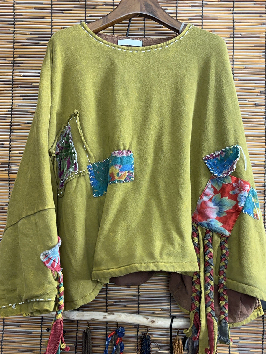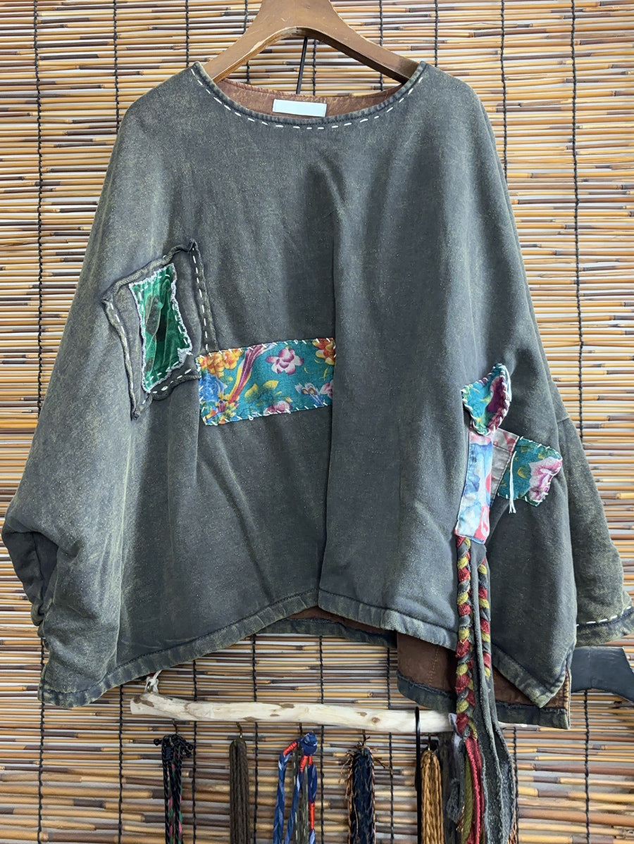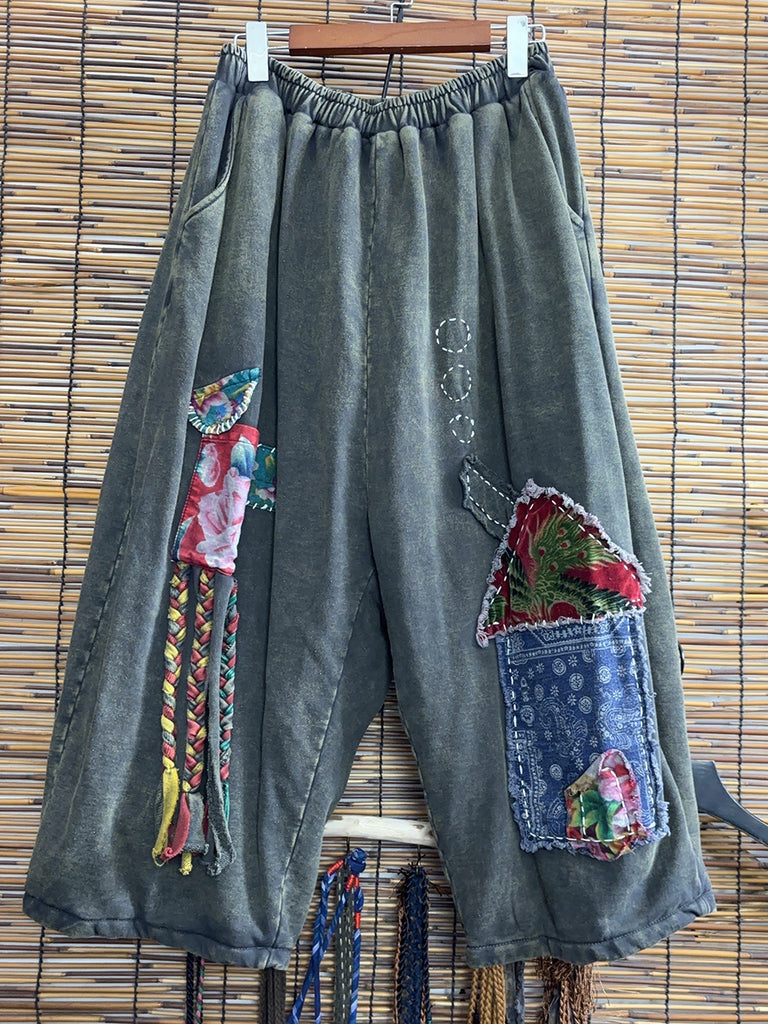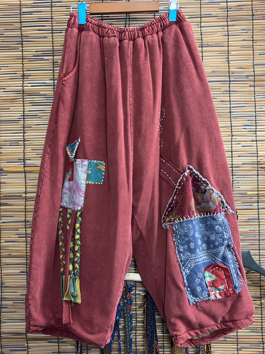 Damen Winter Retro Patchwork O-Neck Quasten Anzüge