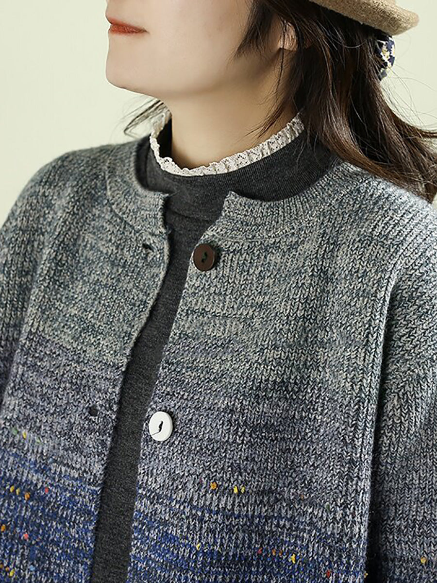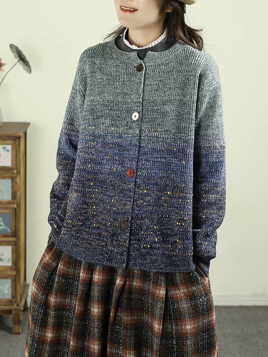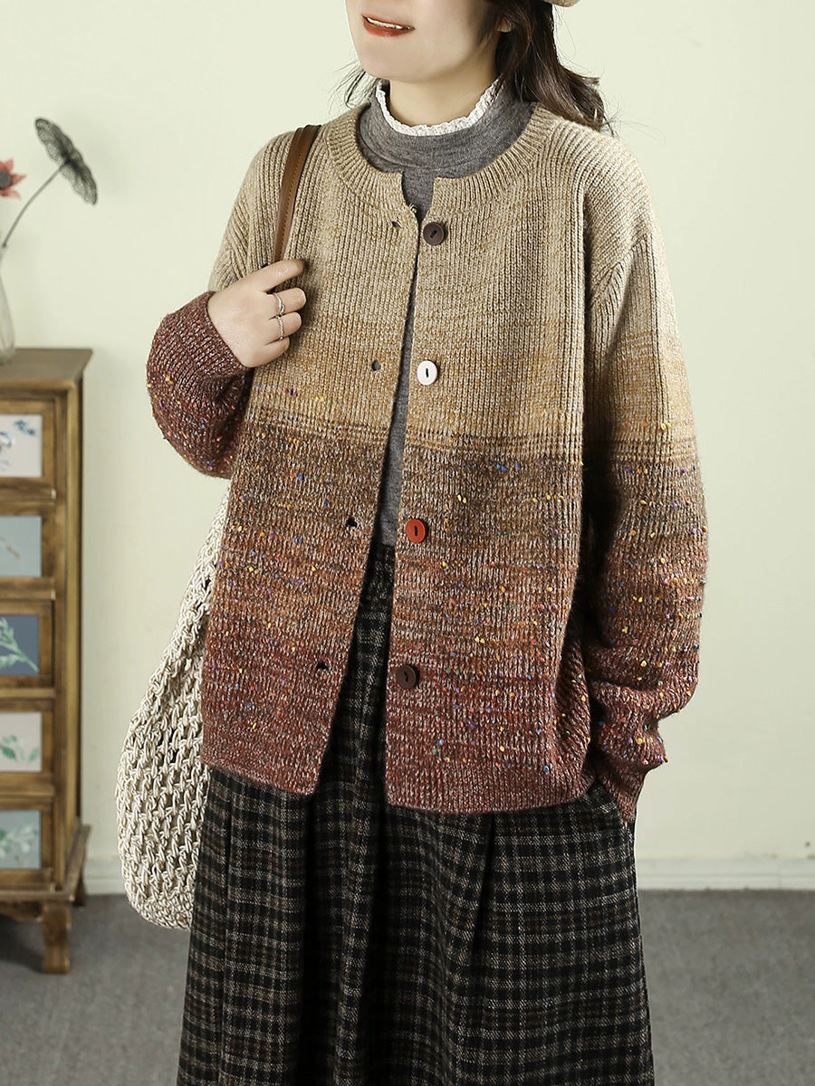 Damen Herbst Artsy Farbverlauf Rundhals-Cardigan-Pullover