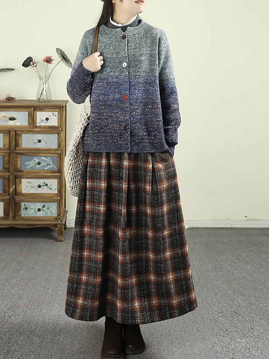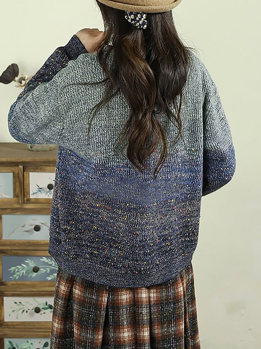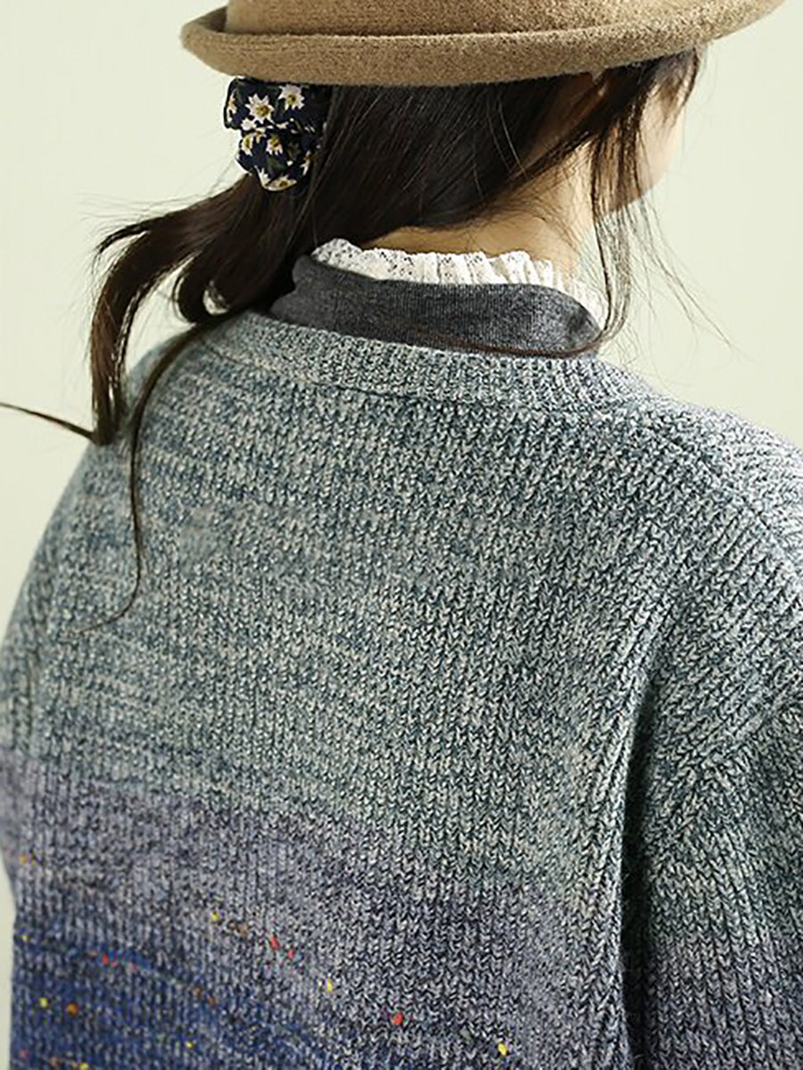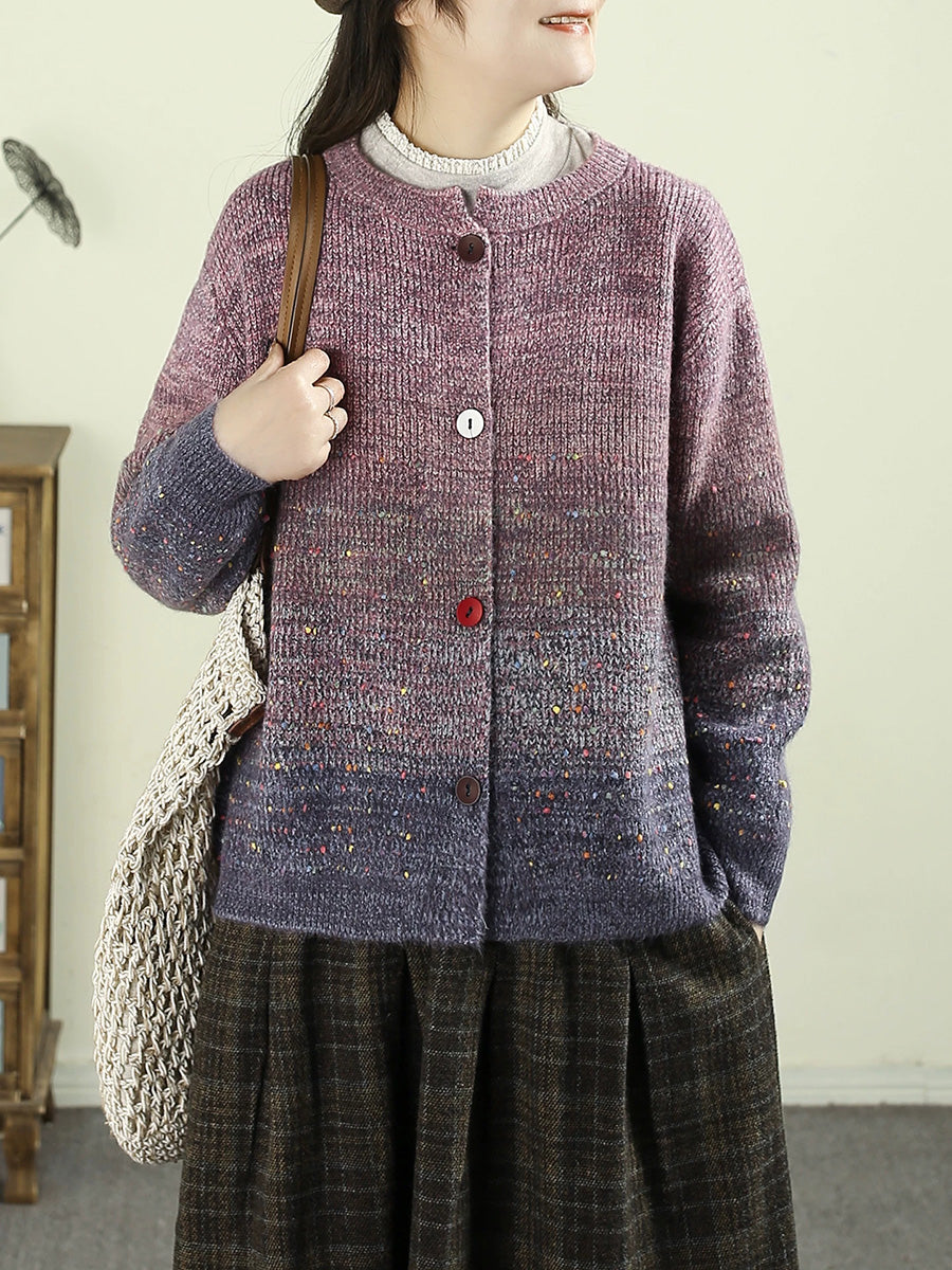 Damen Herbst Artsy Farbverlauf Rundhals-Cardigan-Pullover