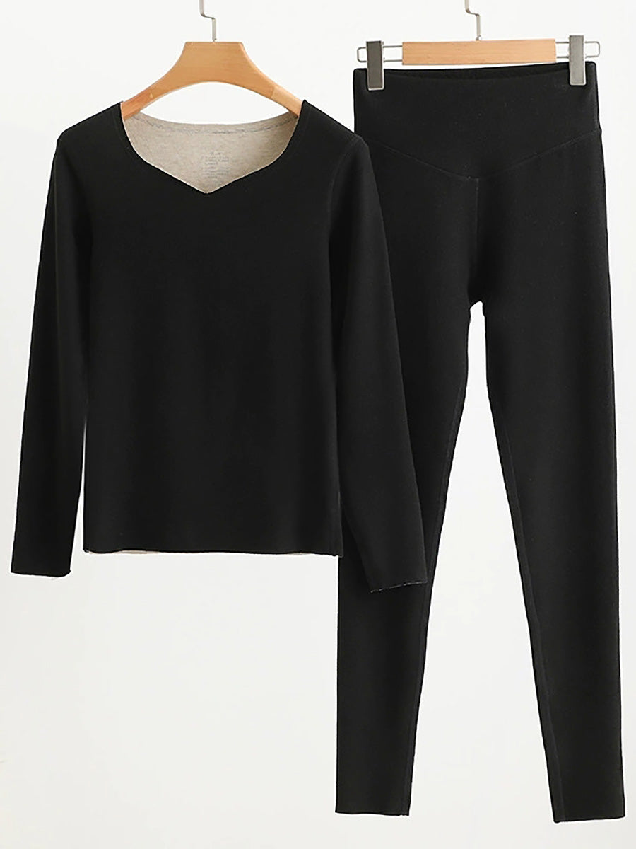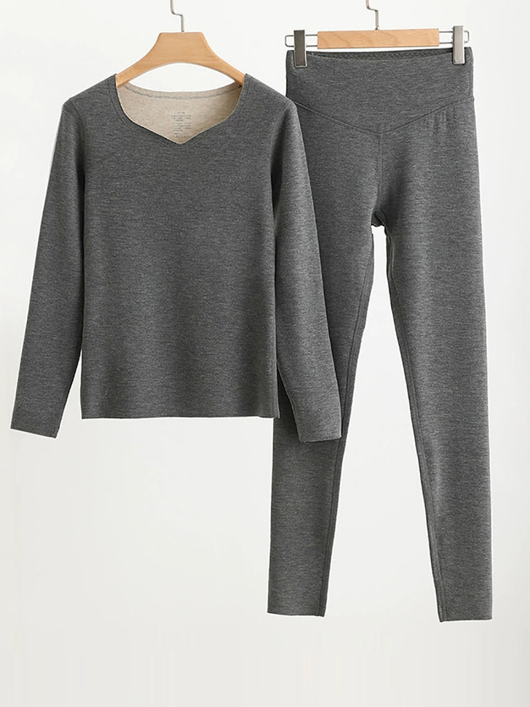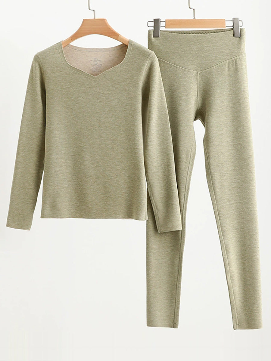 Damen Herbst Freizeit-Einteiler in Unifarben mit V-Ausschnitt