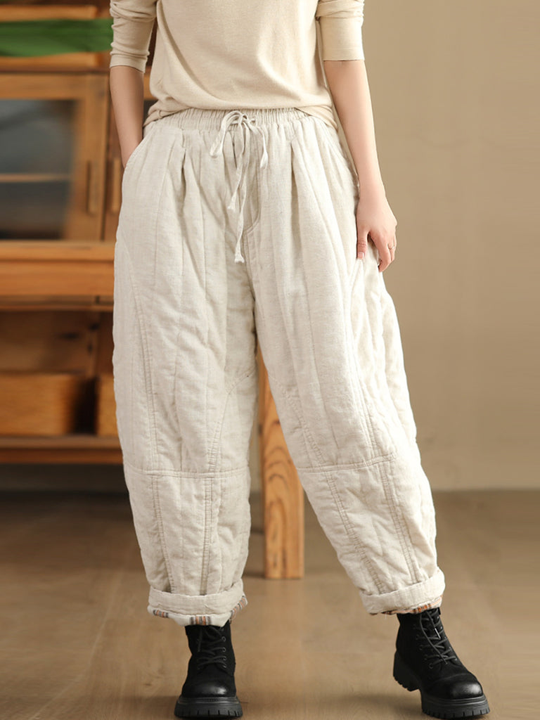 Damen Herbst Pure Color 100% Leinen gepolsterte Haremshose