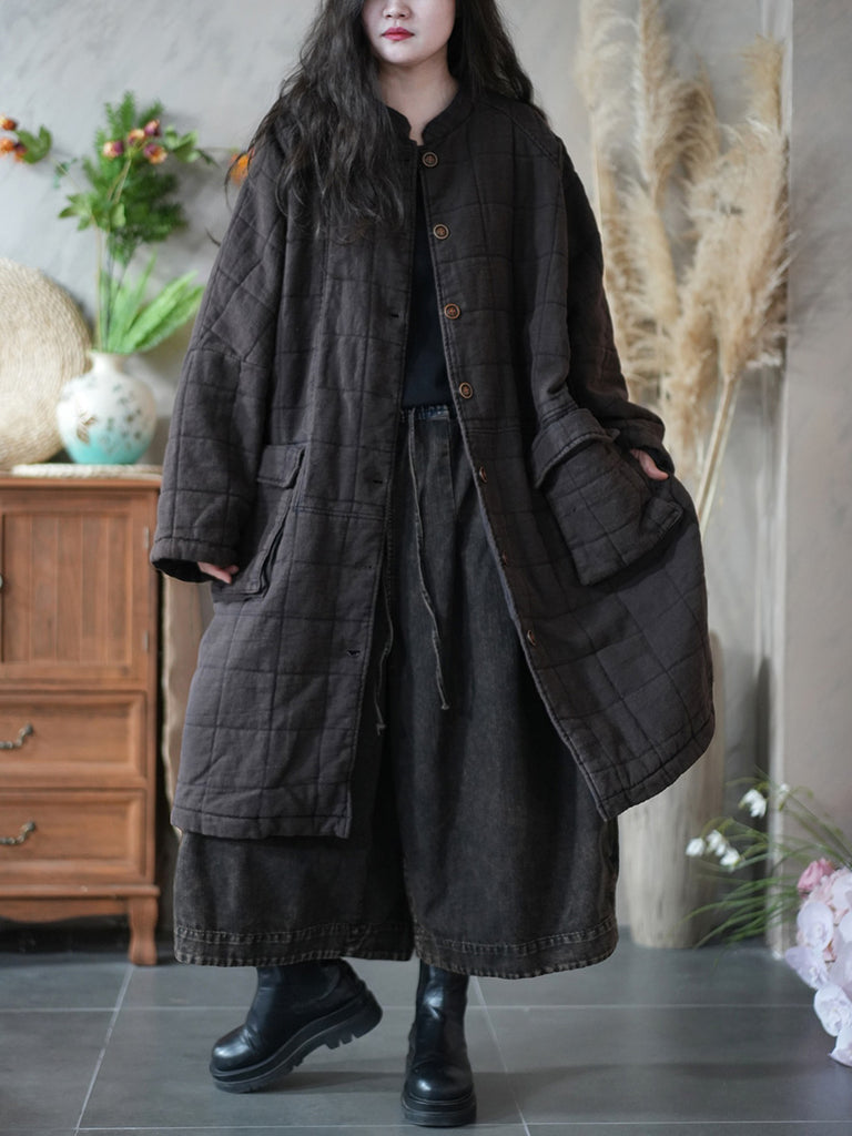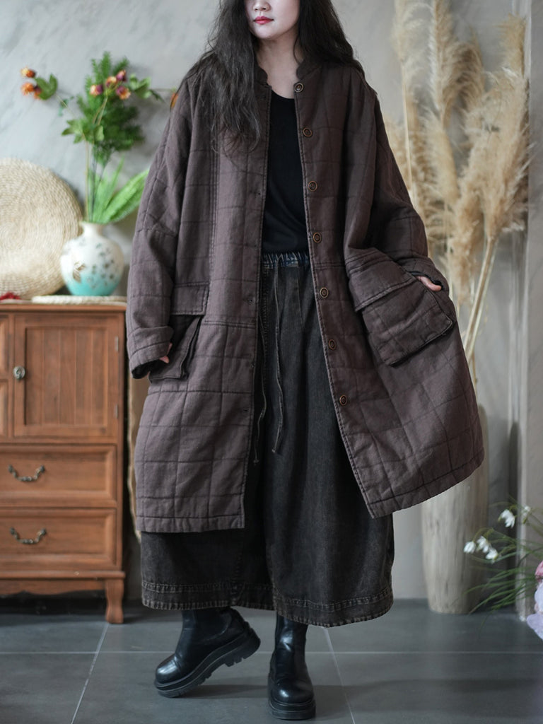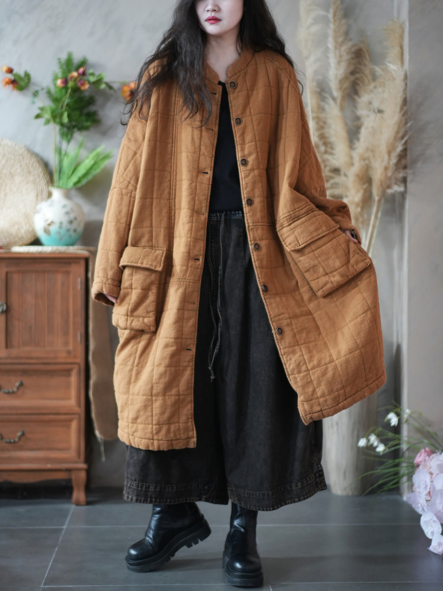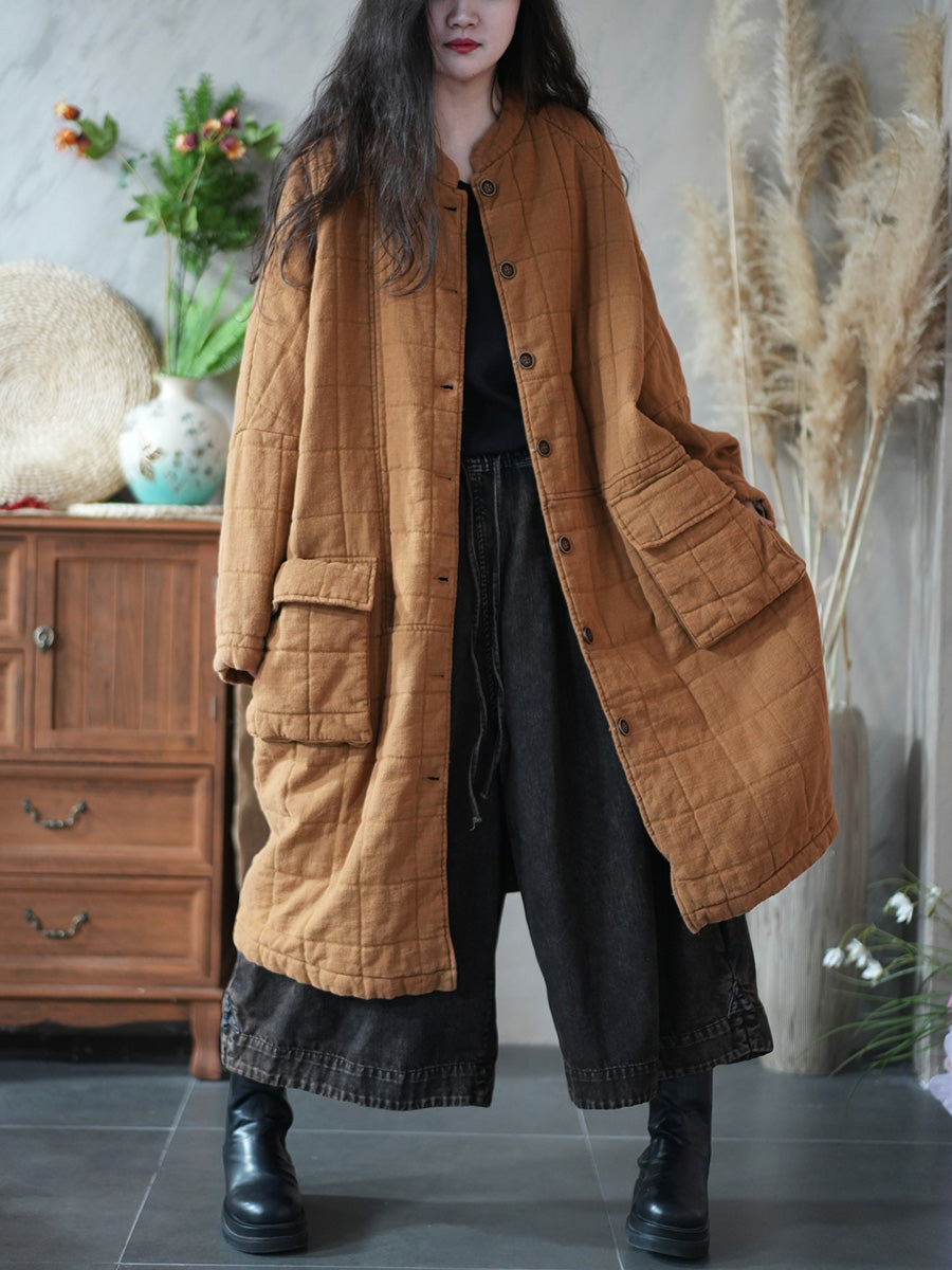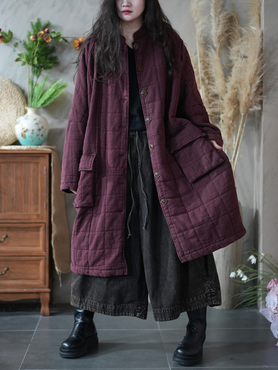Damen Retro Wintermantel in Unifarbe mit Stehkragen, wattiert