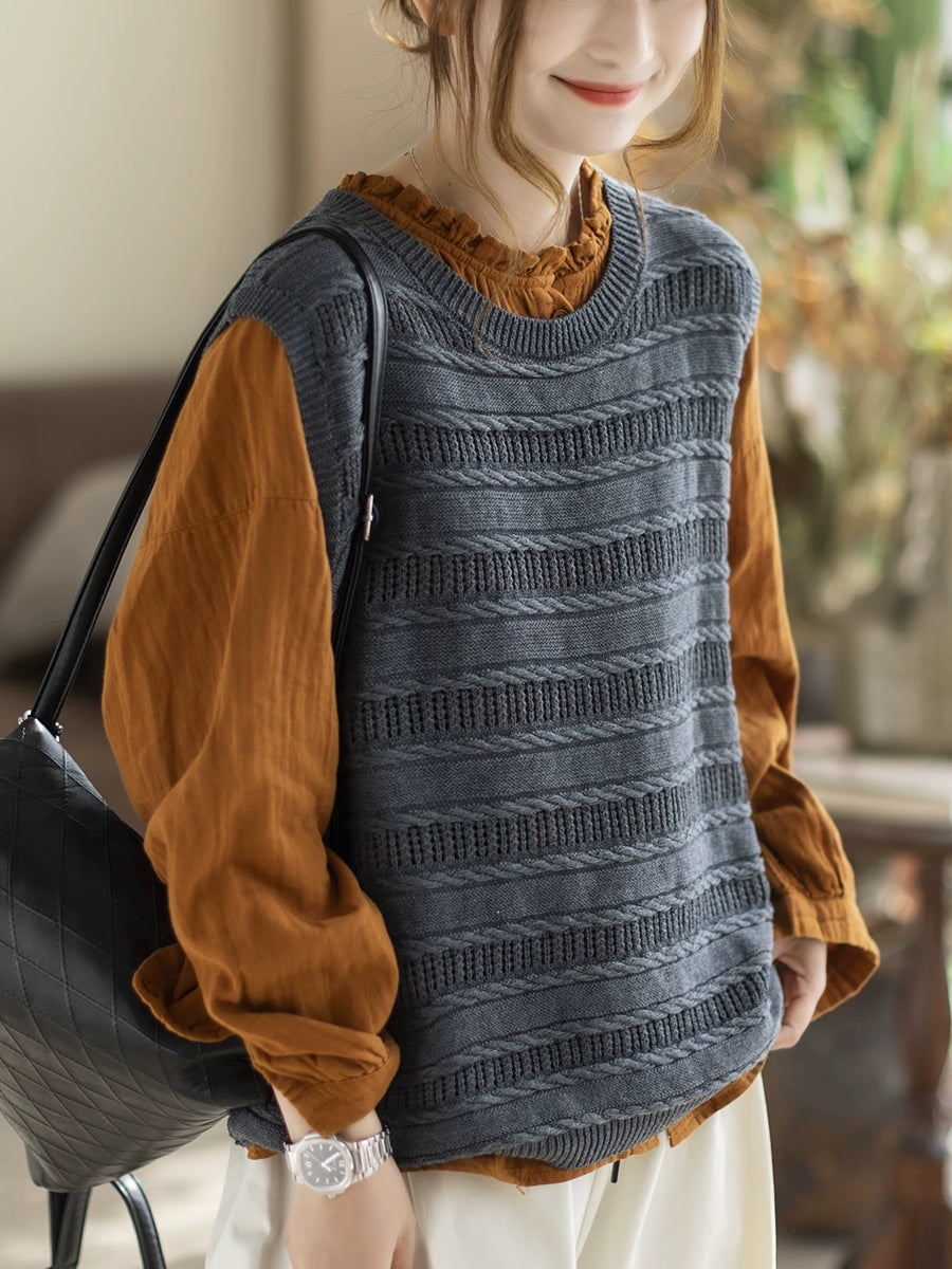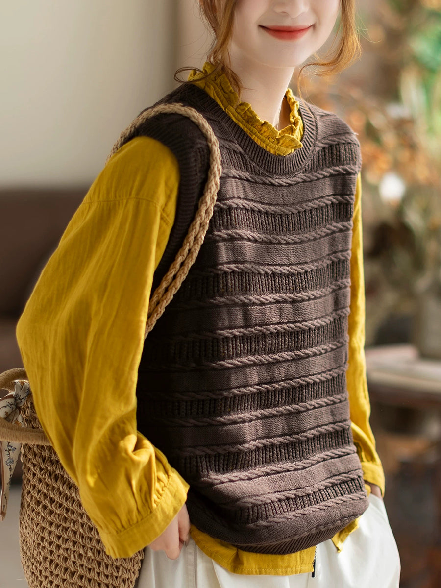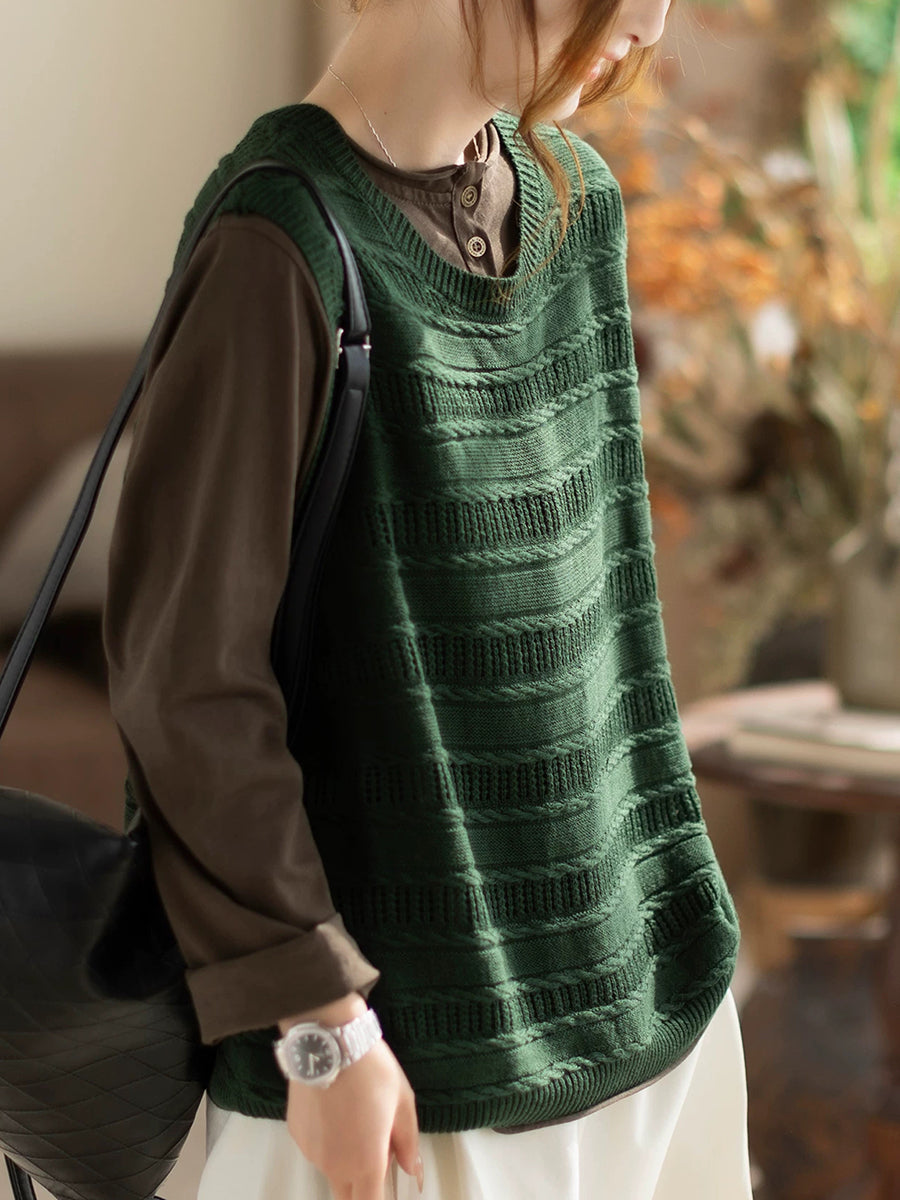 Damen Frühlingsweste aus strickigem, einfarbigem Strick mit Rundhalsausschnitt