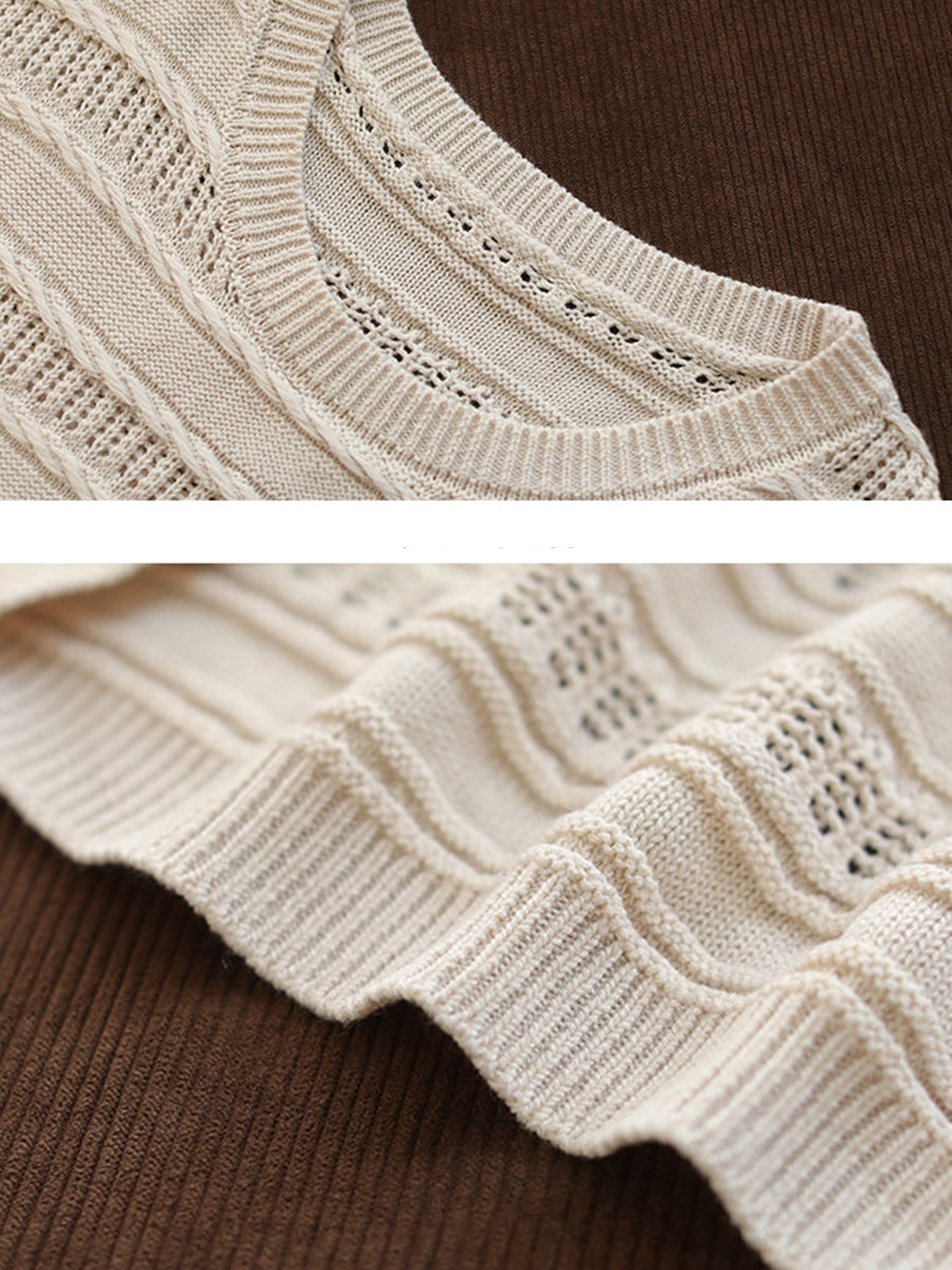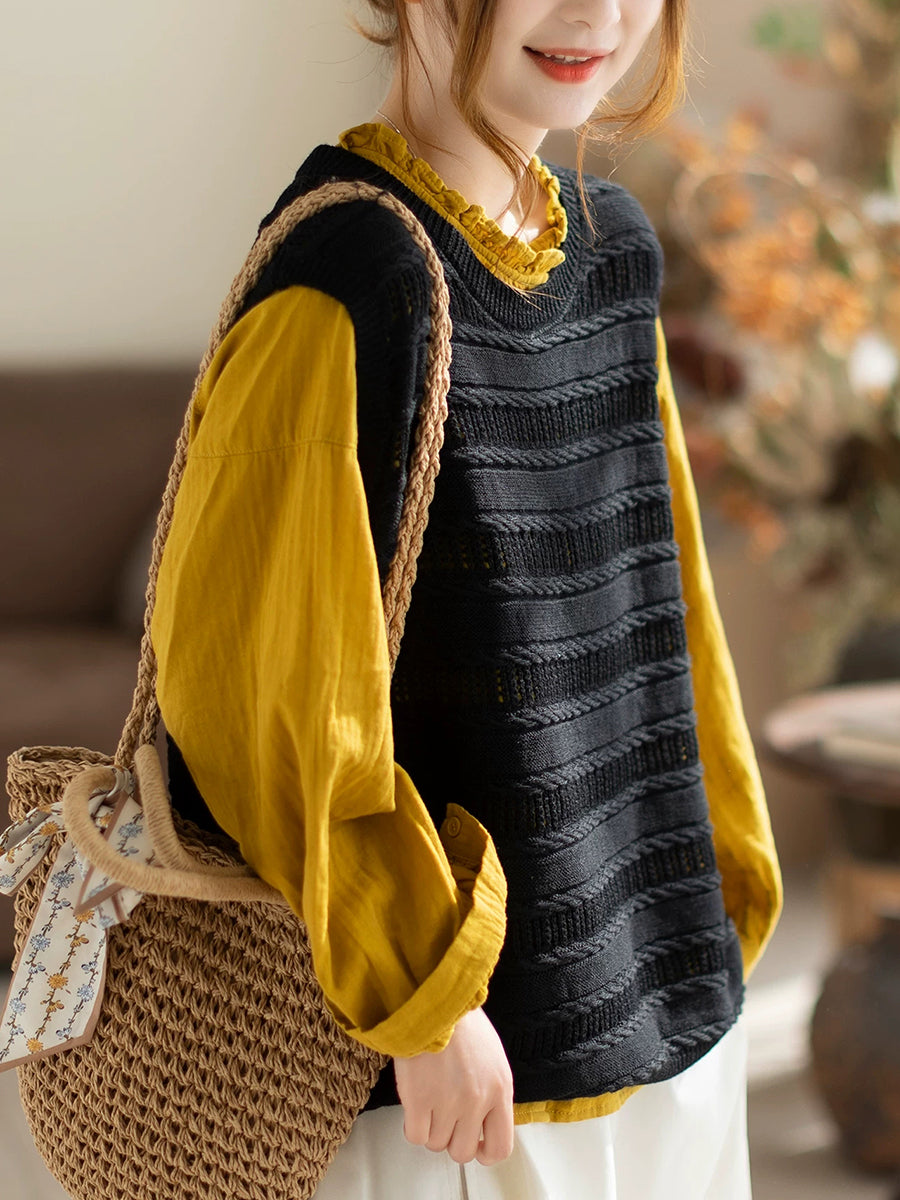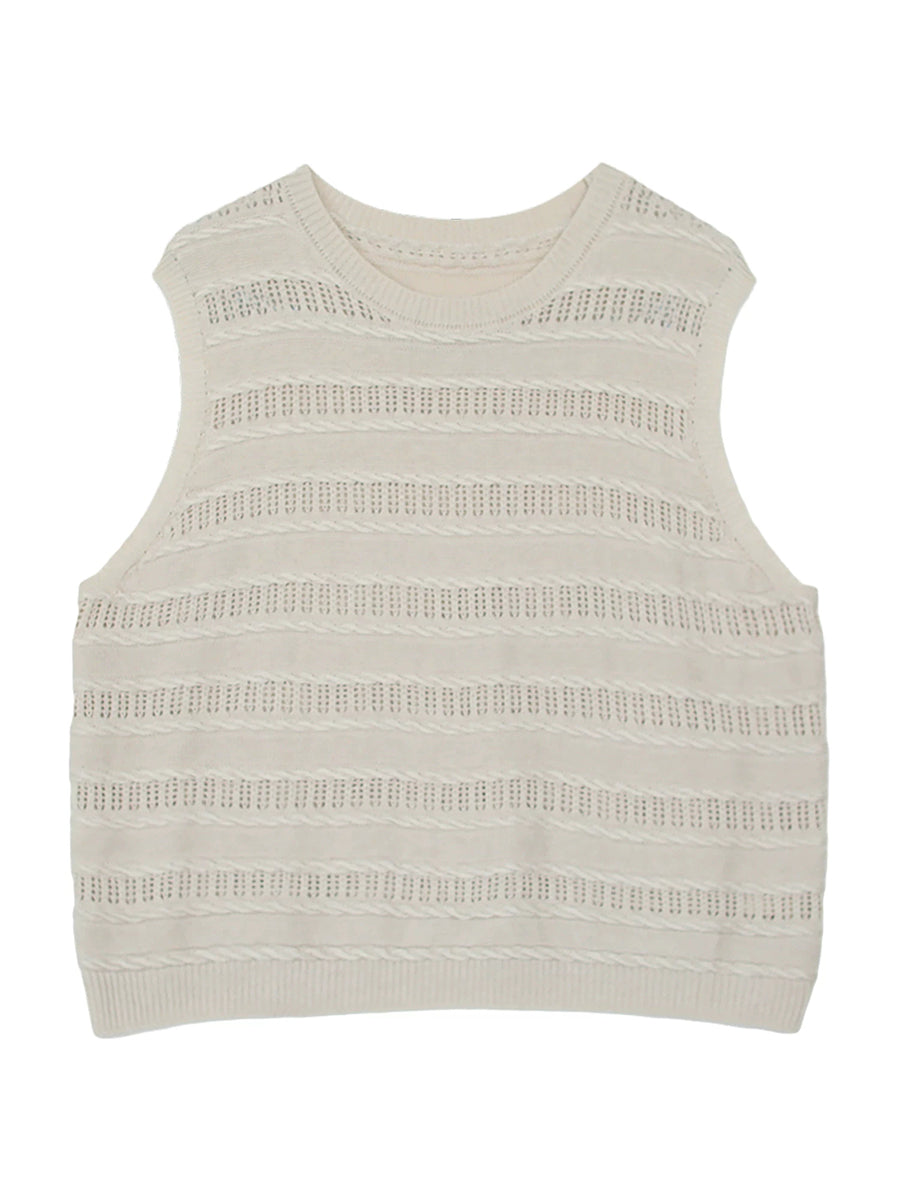 Damen Frühlingsweste aus strickigem, einfarbigem Strick mit Rundhalsausschnitt