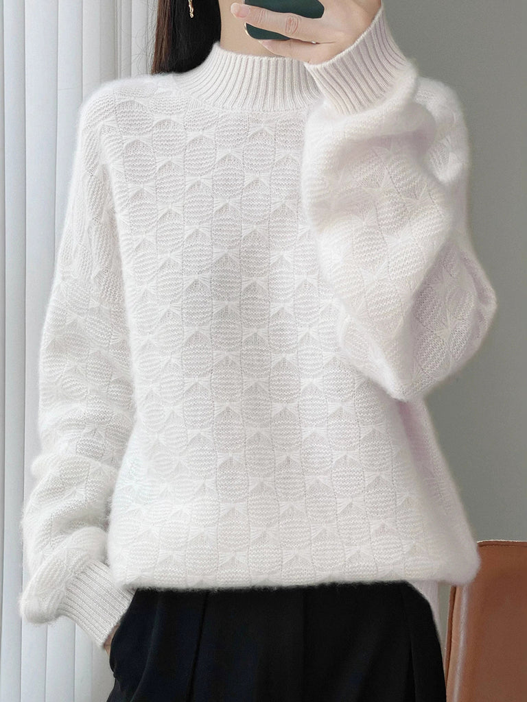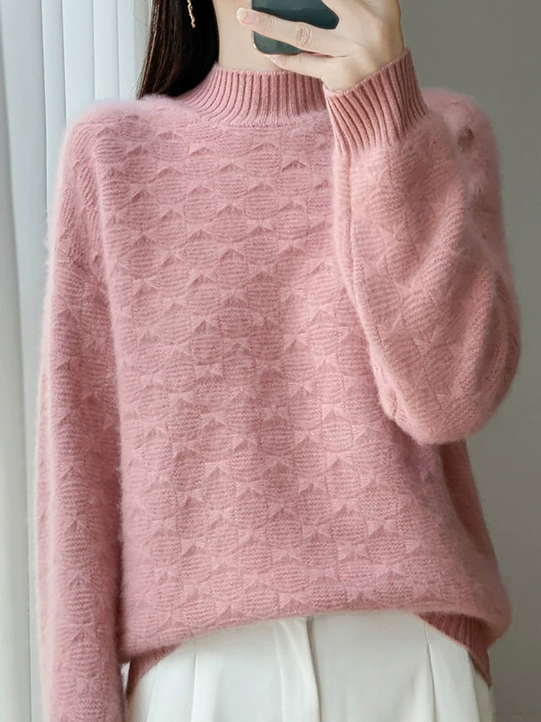 Damen Vintage Herbstpullover mit Schleife und halben Rollkragen