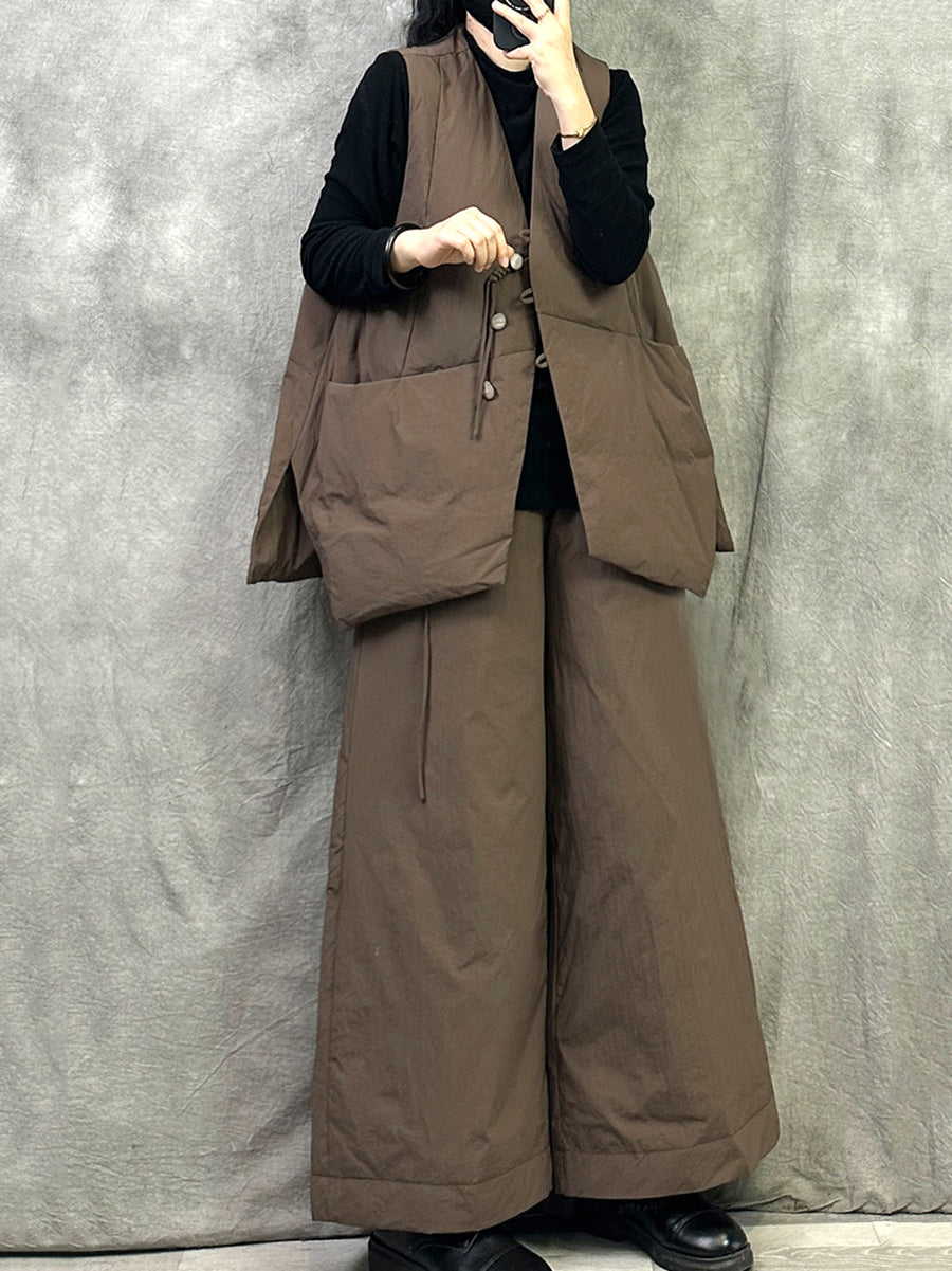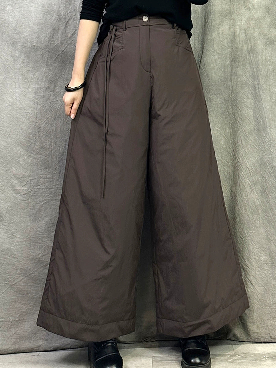 Damen Winter Casual Einfarbige Daunenhose mit weitem Bein