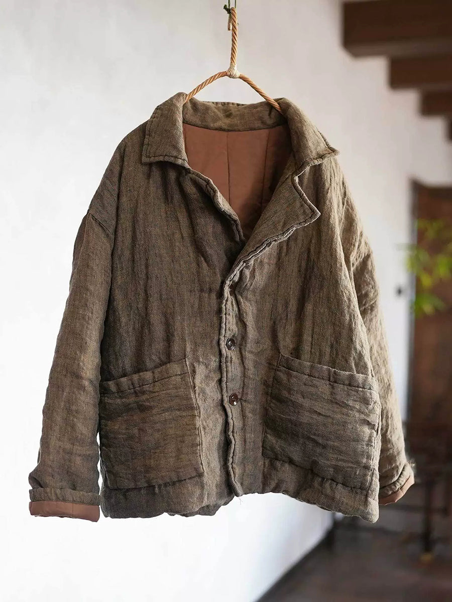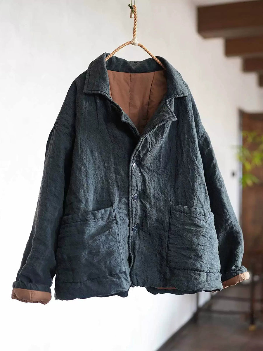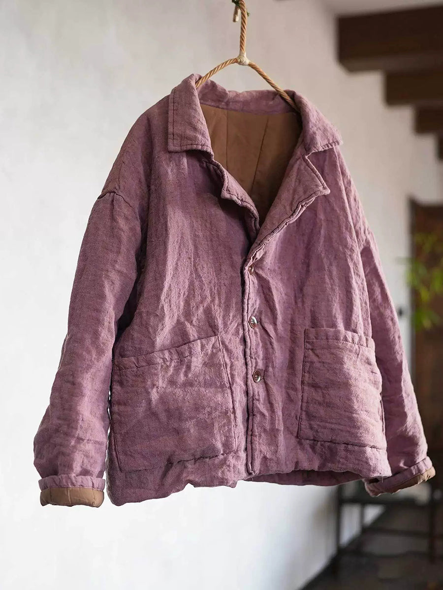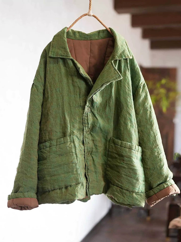Damen Winter Retro Einfarbiger Steppmantel mit Umlegekragen