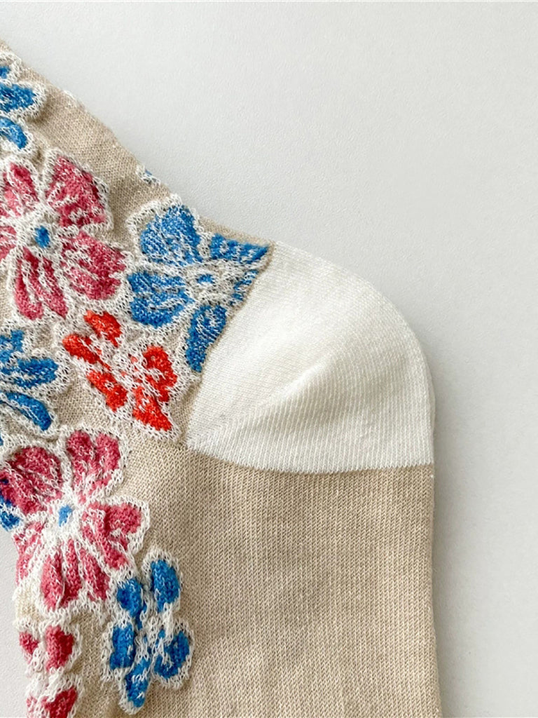 5 Paar Damensocken aus Baumwolle mit Blumenmuster im Jacquard-Stil
