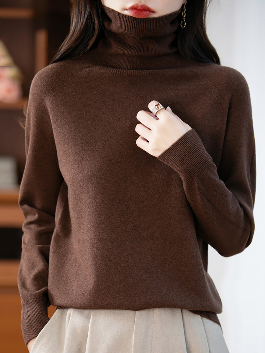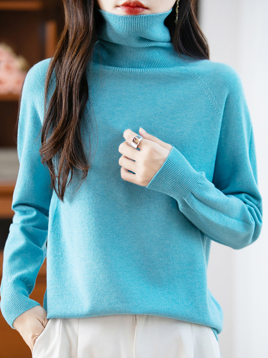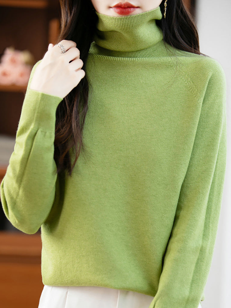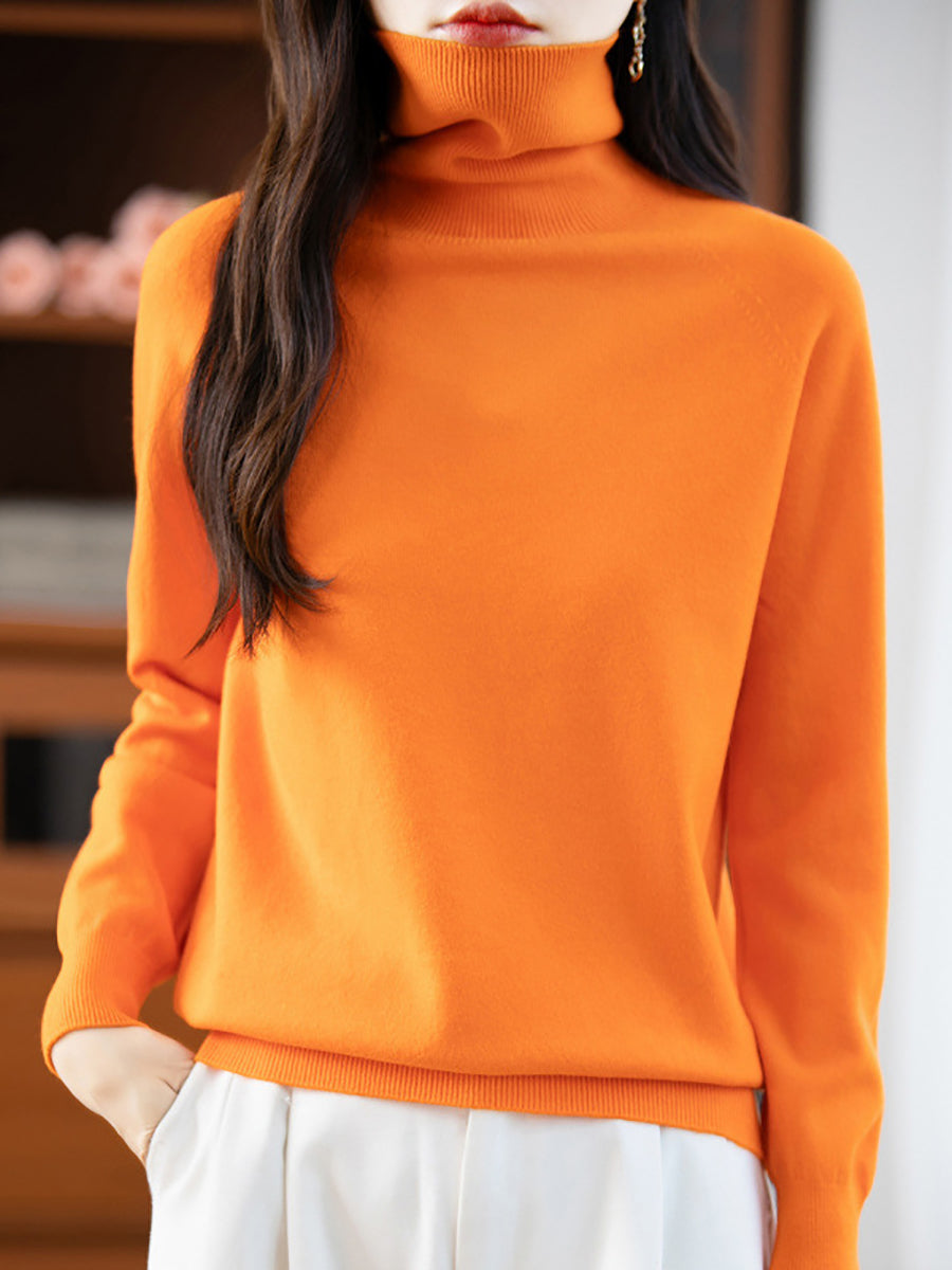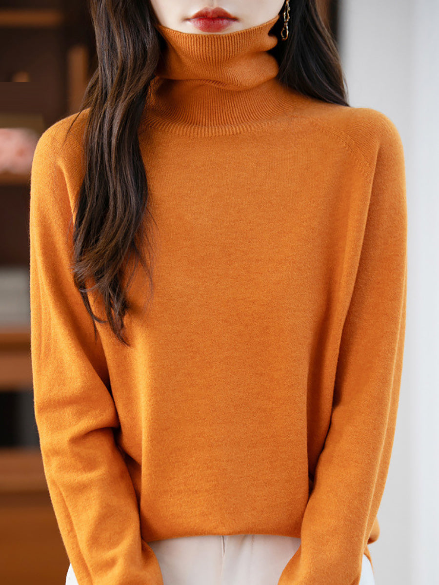 Damen Herbst Kunstvoller Rollkragenpullover in Unifarben