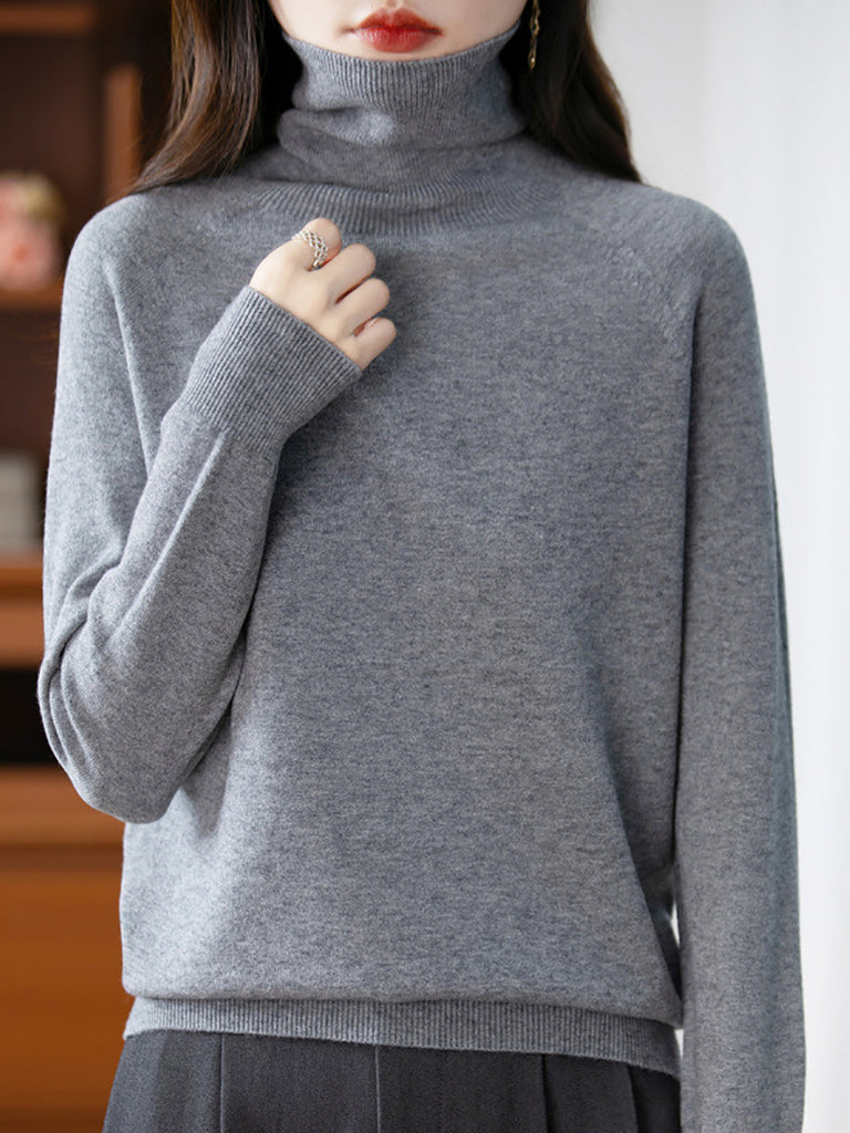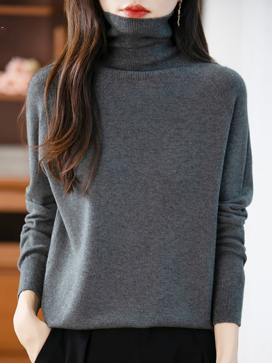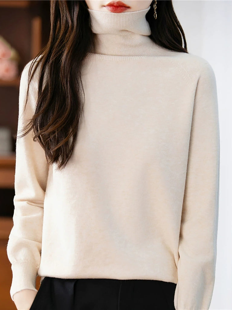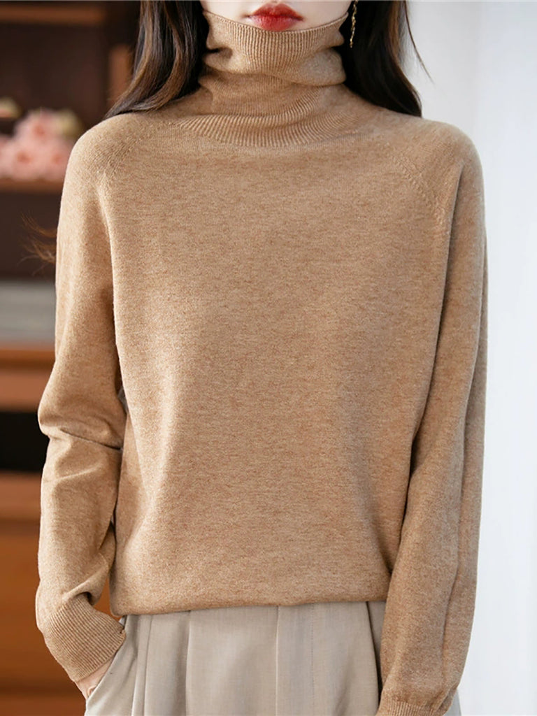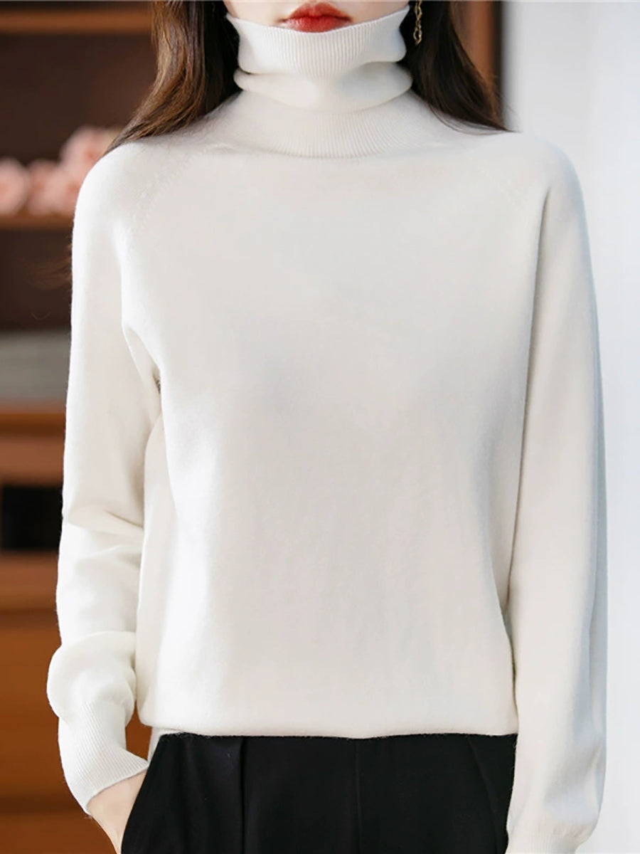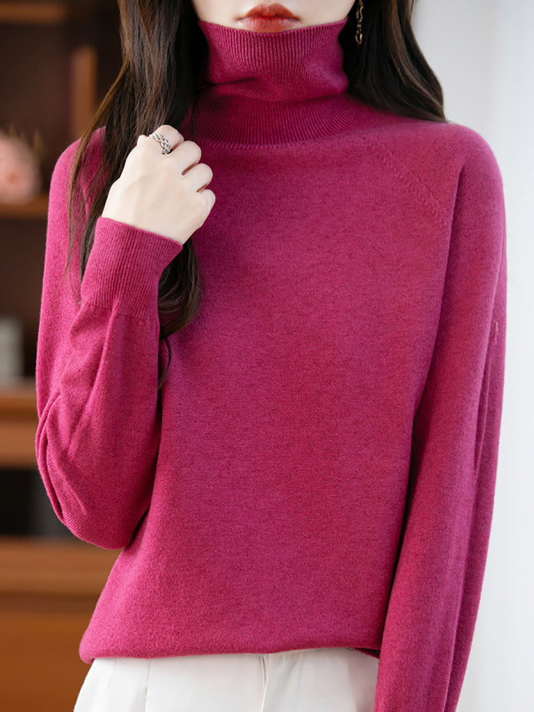 Damen Herbst Kunstvoller Rollkragenpullover in Unifarben