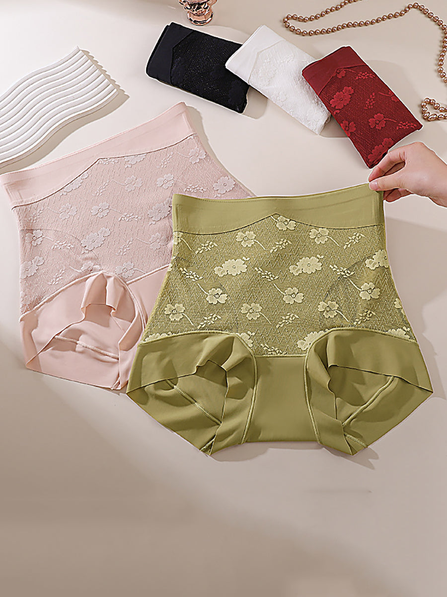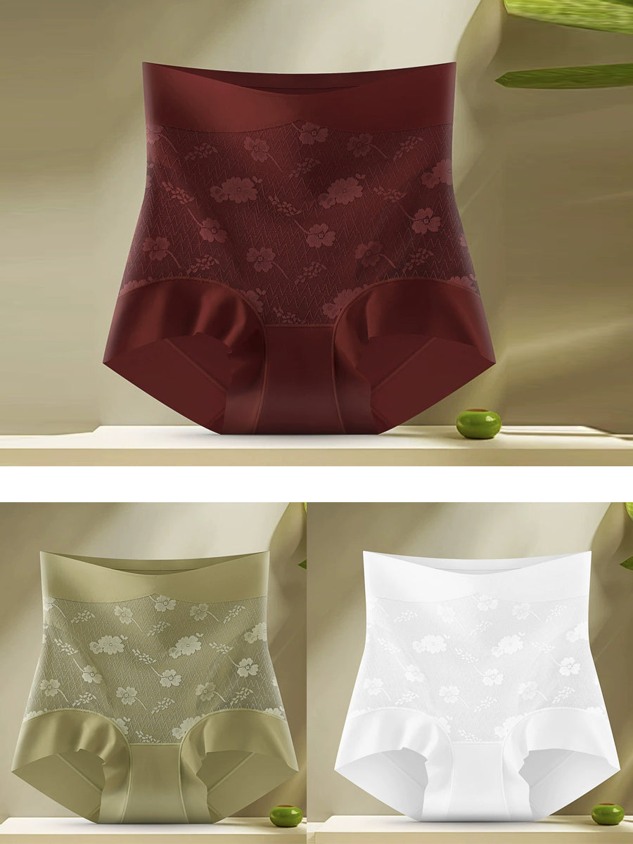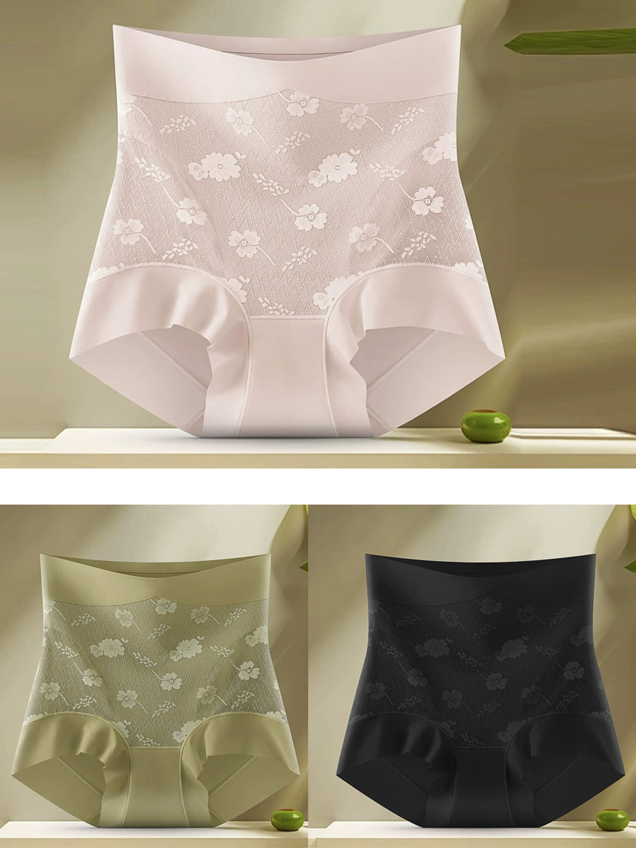 3-teiliges Damen-Unterwäsche-Set mit künstlerischem Blumen-Jacquardmuster und hohem Bund