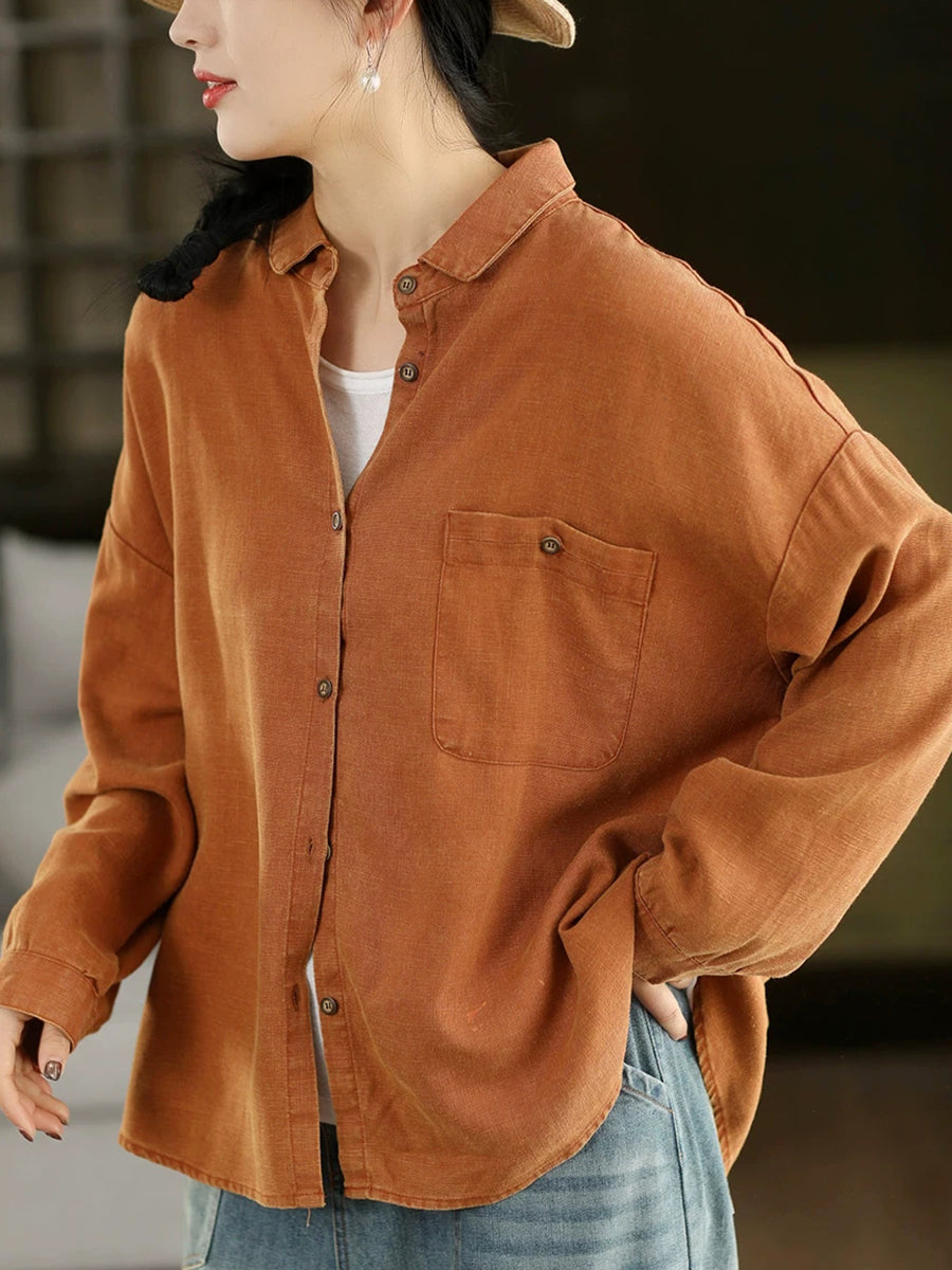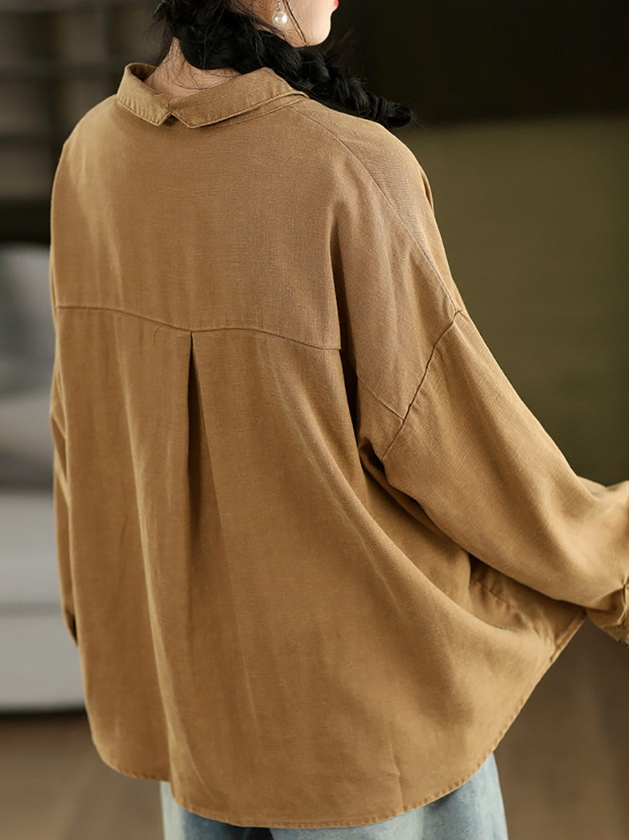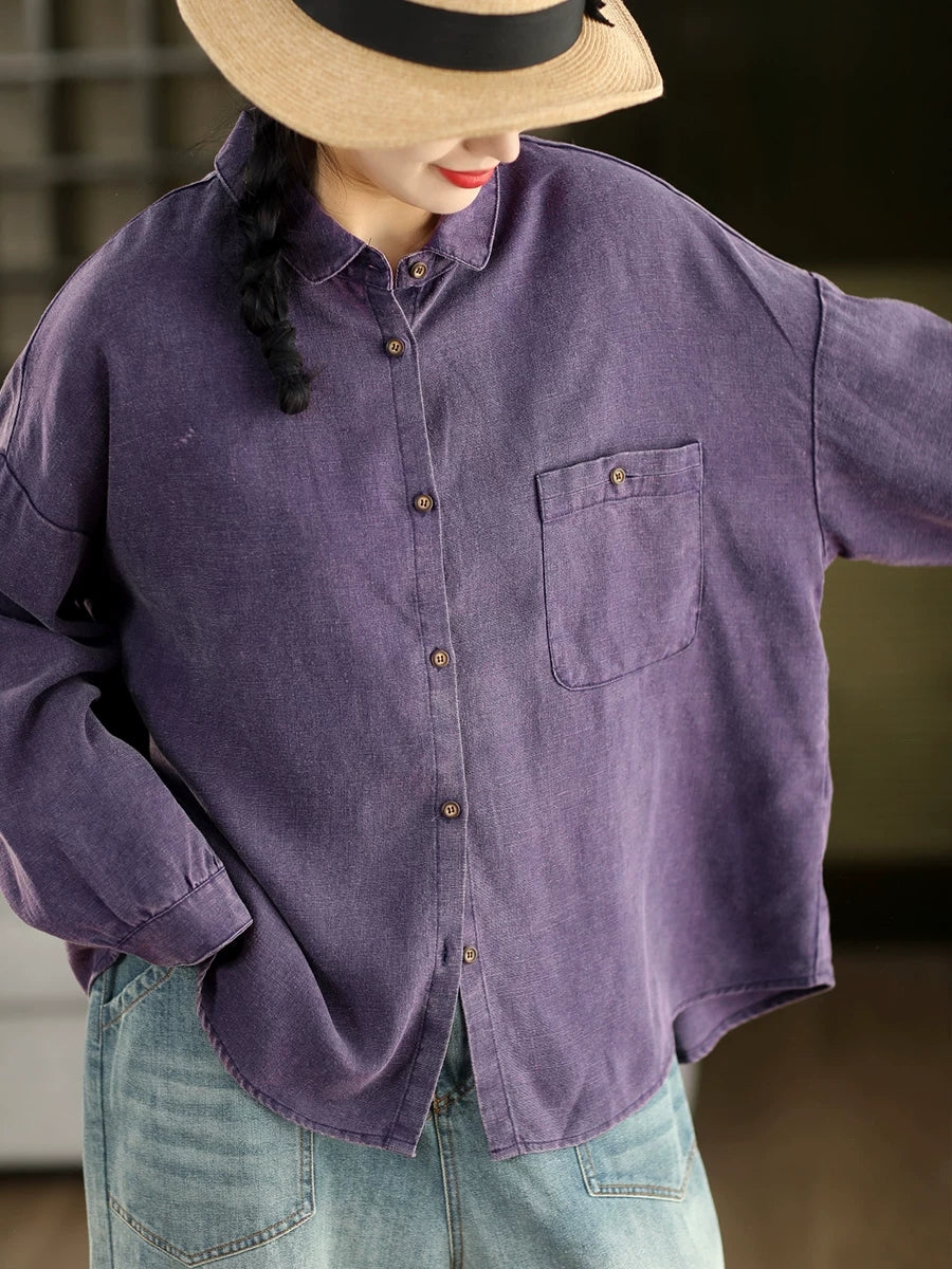 Damen Frühlingsbluse aus 100% Leinen, künstlerisch, einfarbig