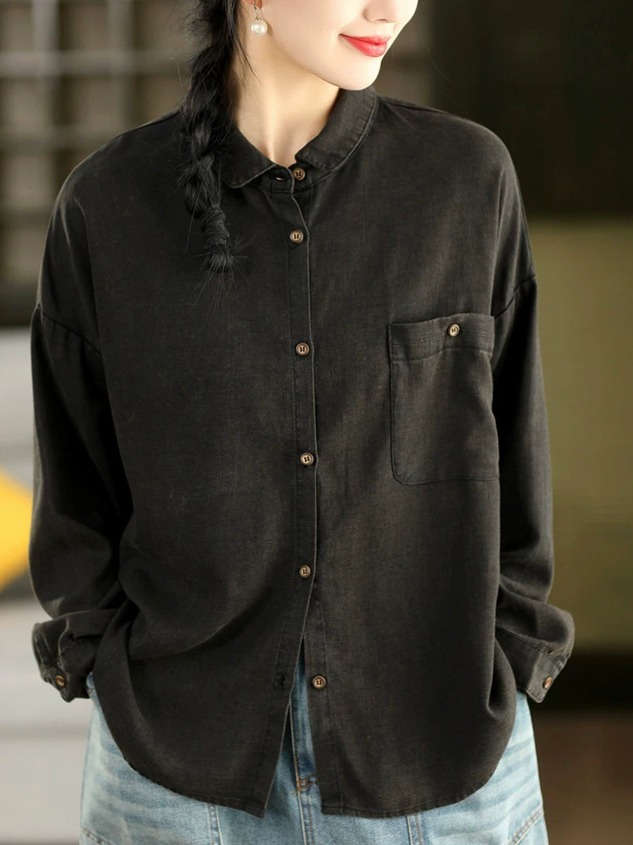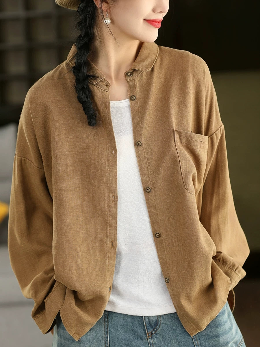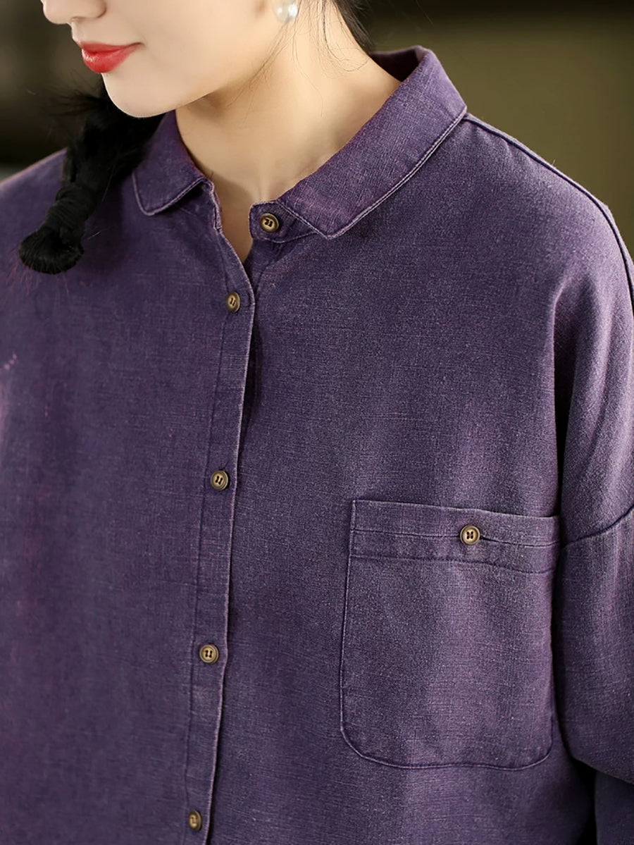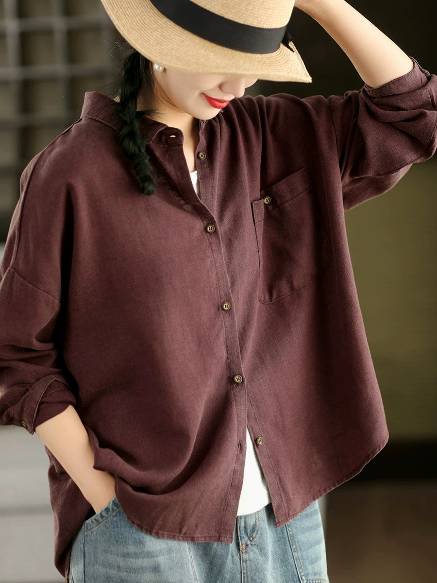 Damen Frühlingsbluse aus 100% Leinen, künstlerisch, einfarbig