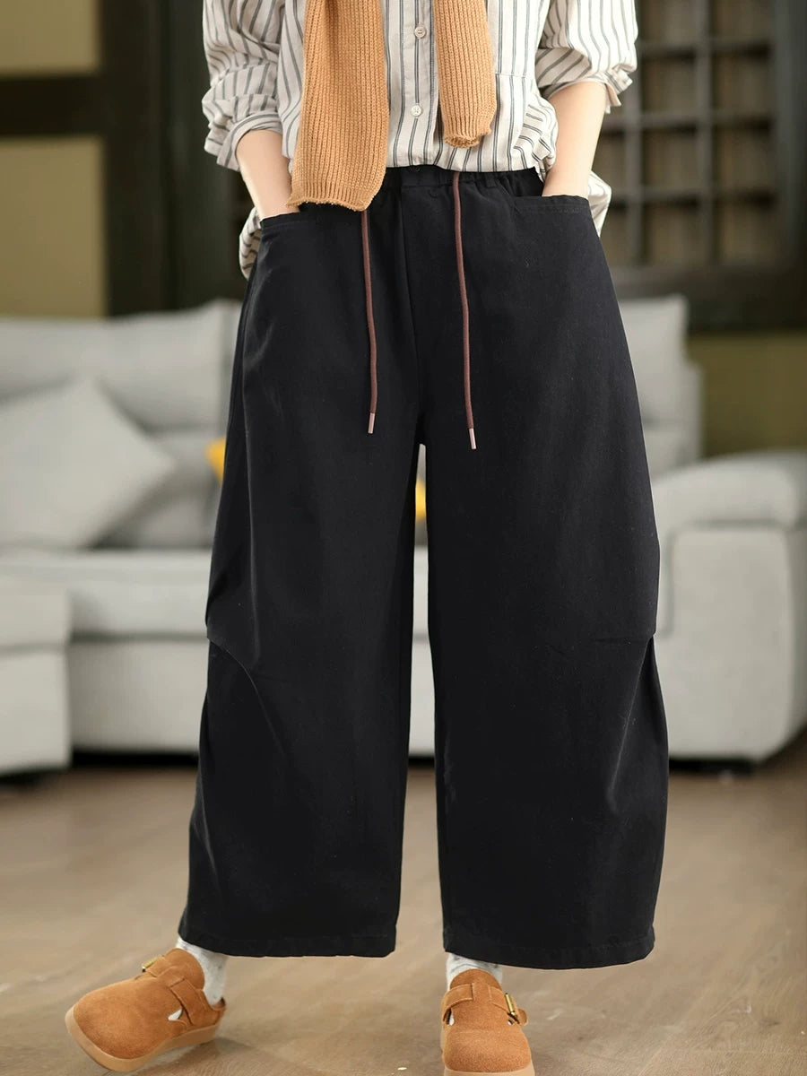 Damen Frühlings-Freizeithose, einfarbig, 100% Baumwolle, gerader Schnitt