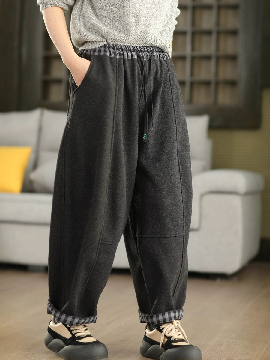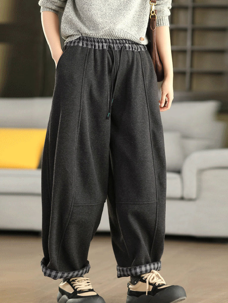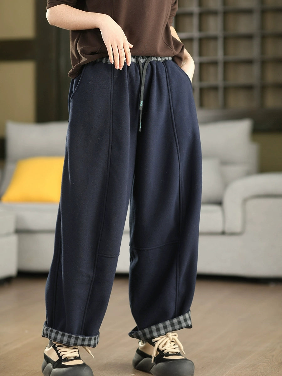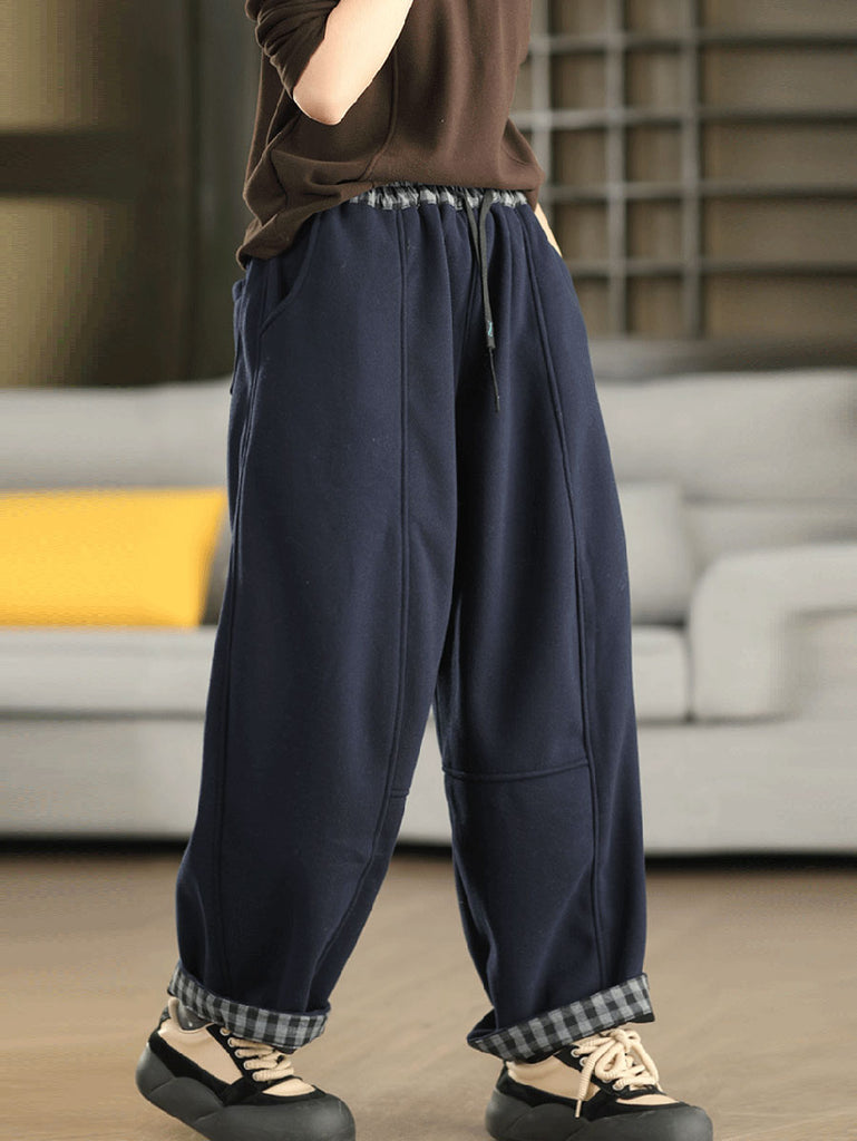Damen Winter Karomuster Haremshose mit Fleecefutter