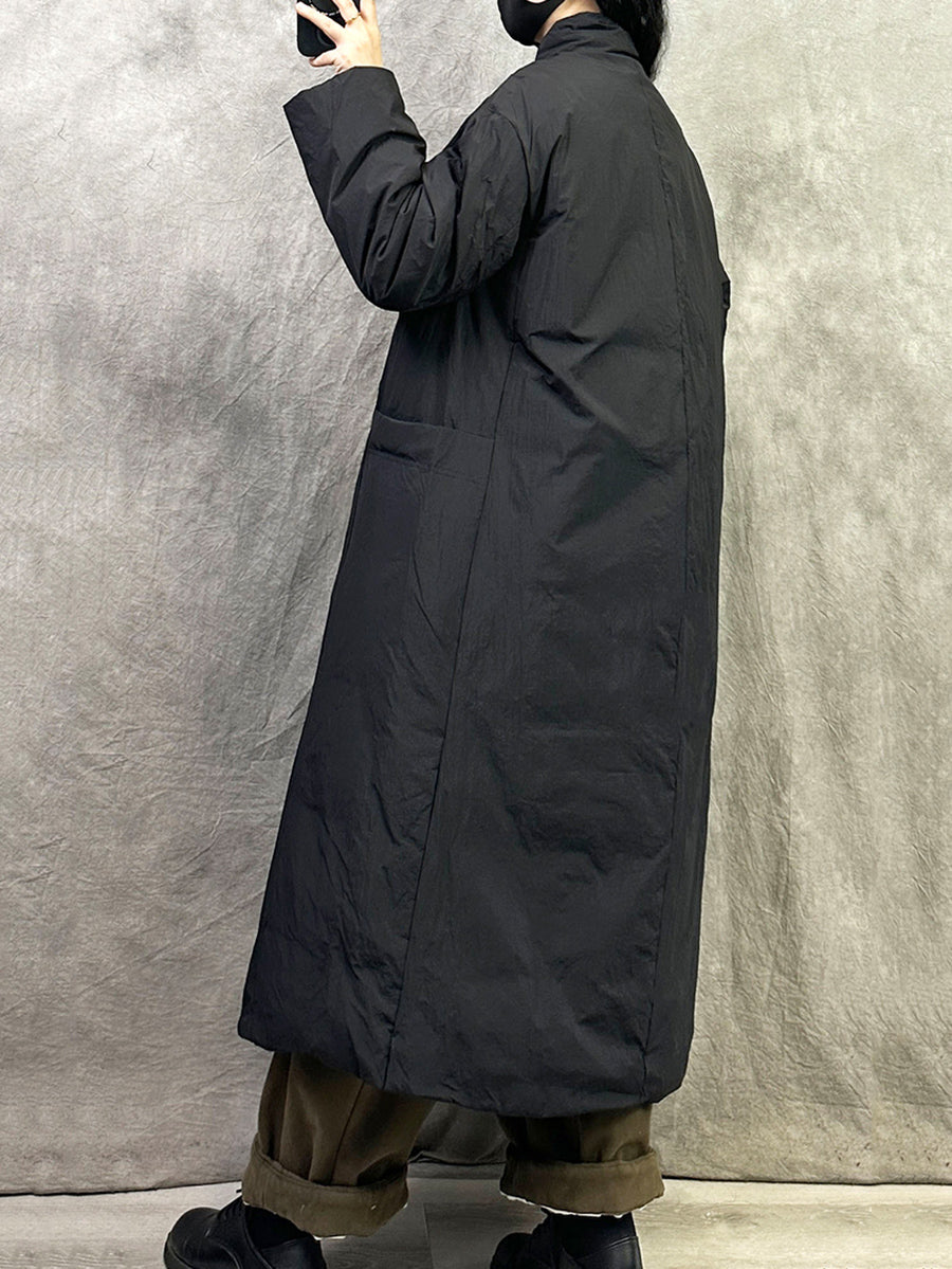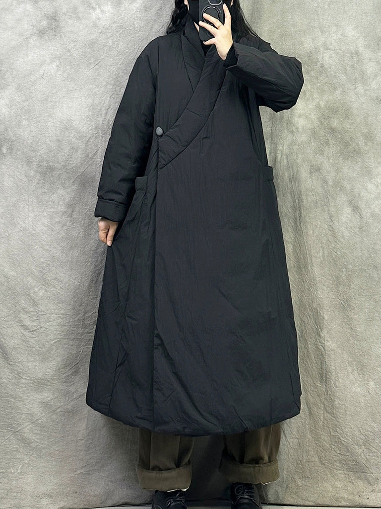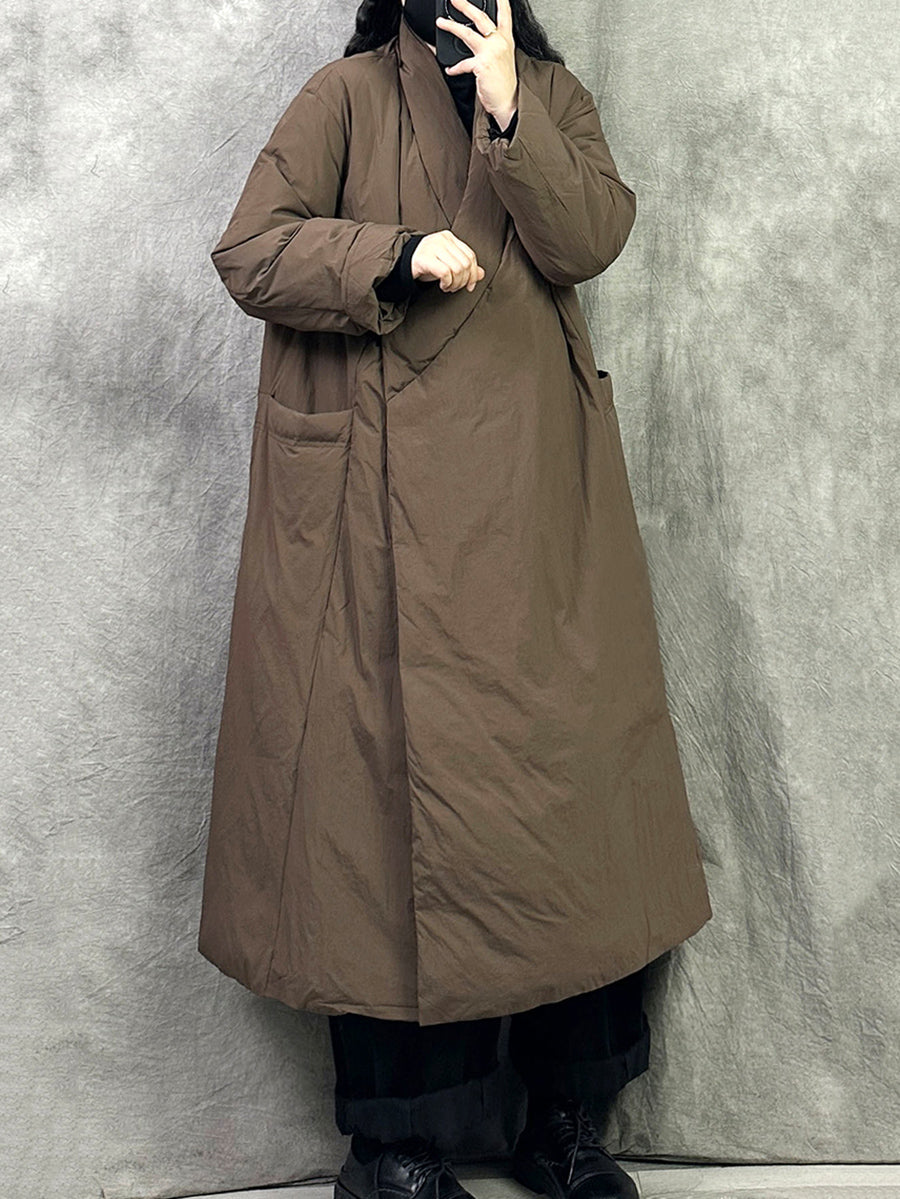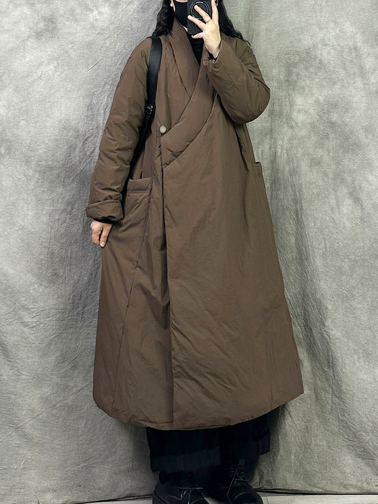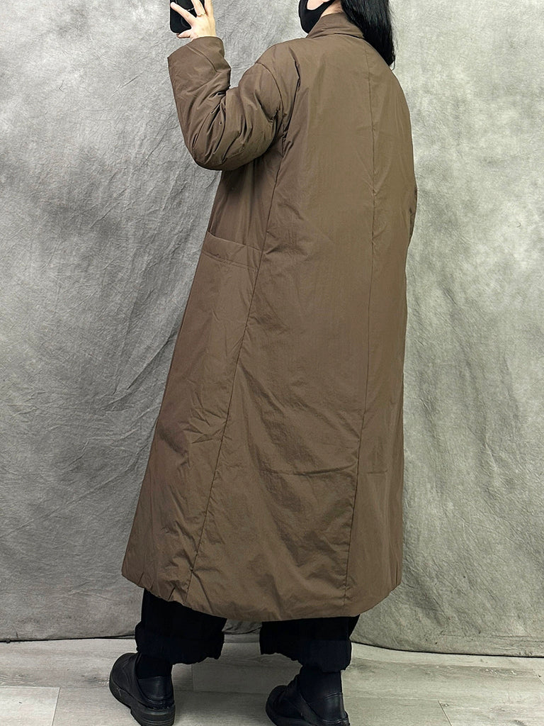 Damen Winter Retro Daunenmantel in Unifarben mit V-Ausschnitt