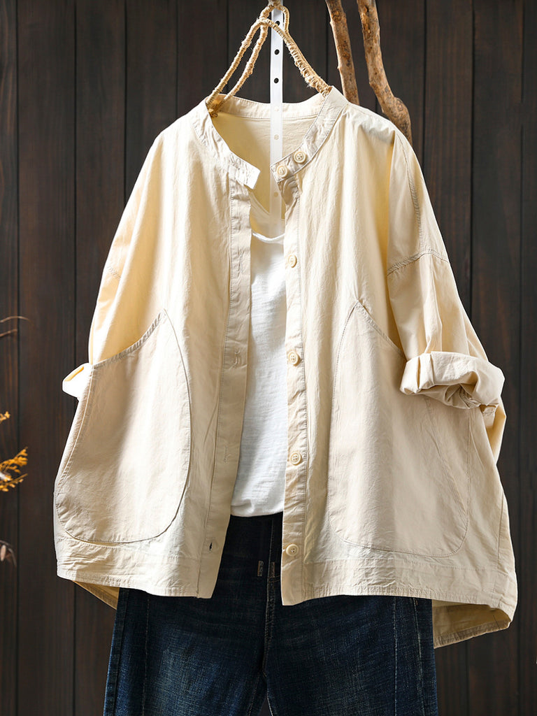 Damen Sommer Casual Pure Color Stehkragen Strickjacke Shirt