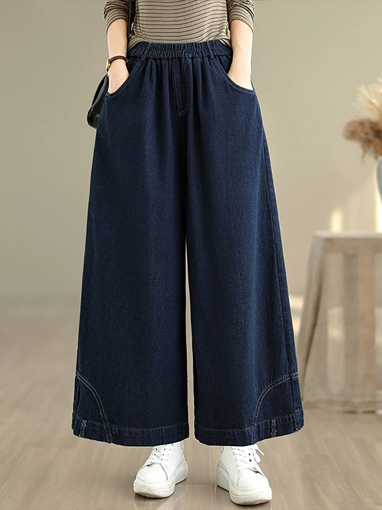 Damen Herbst Retro Washed Denim Weite Beinhose