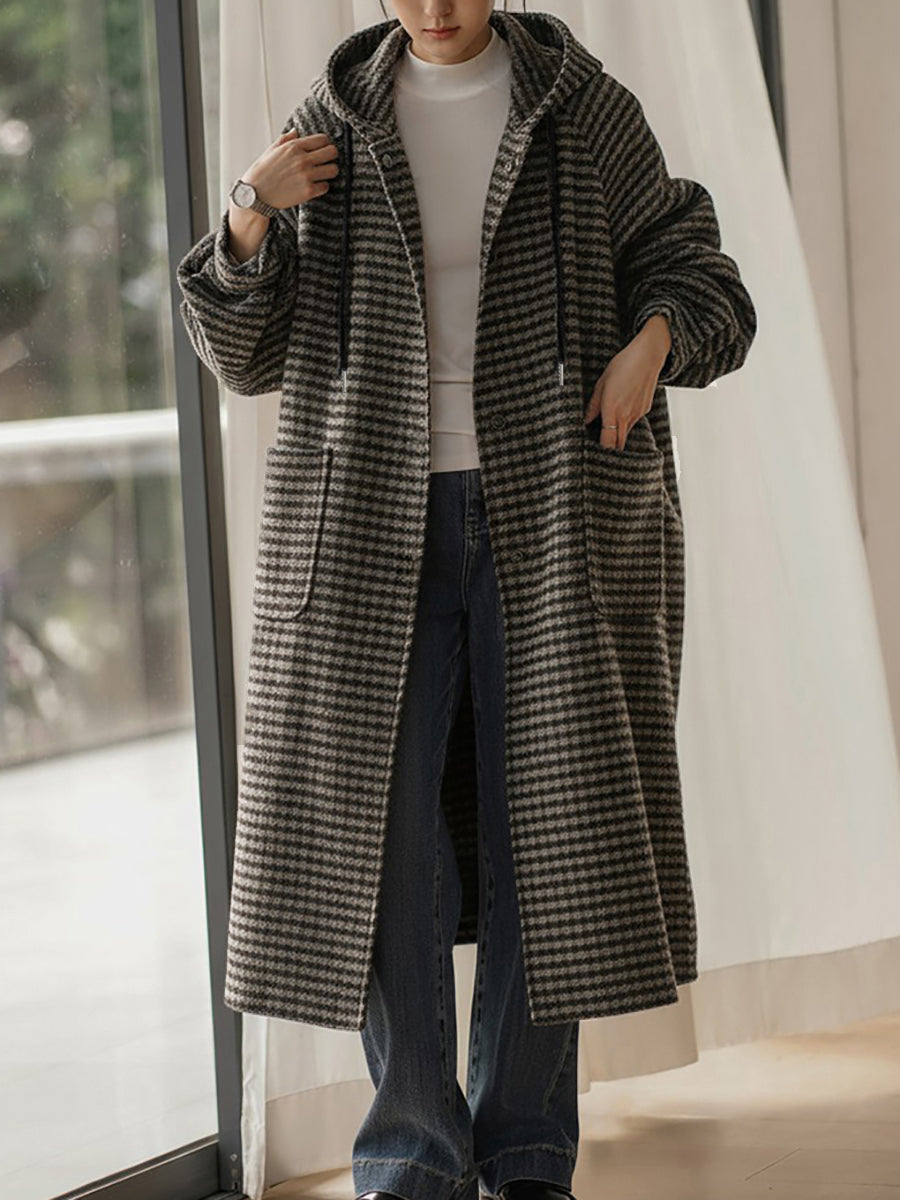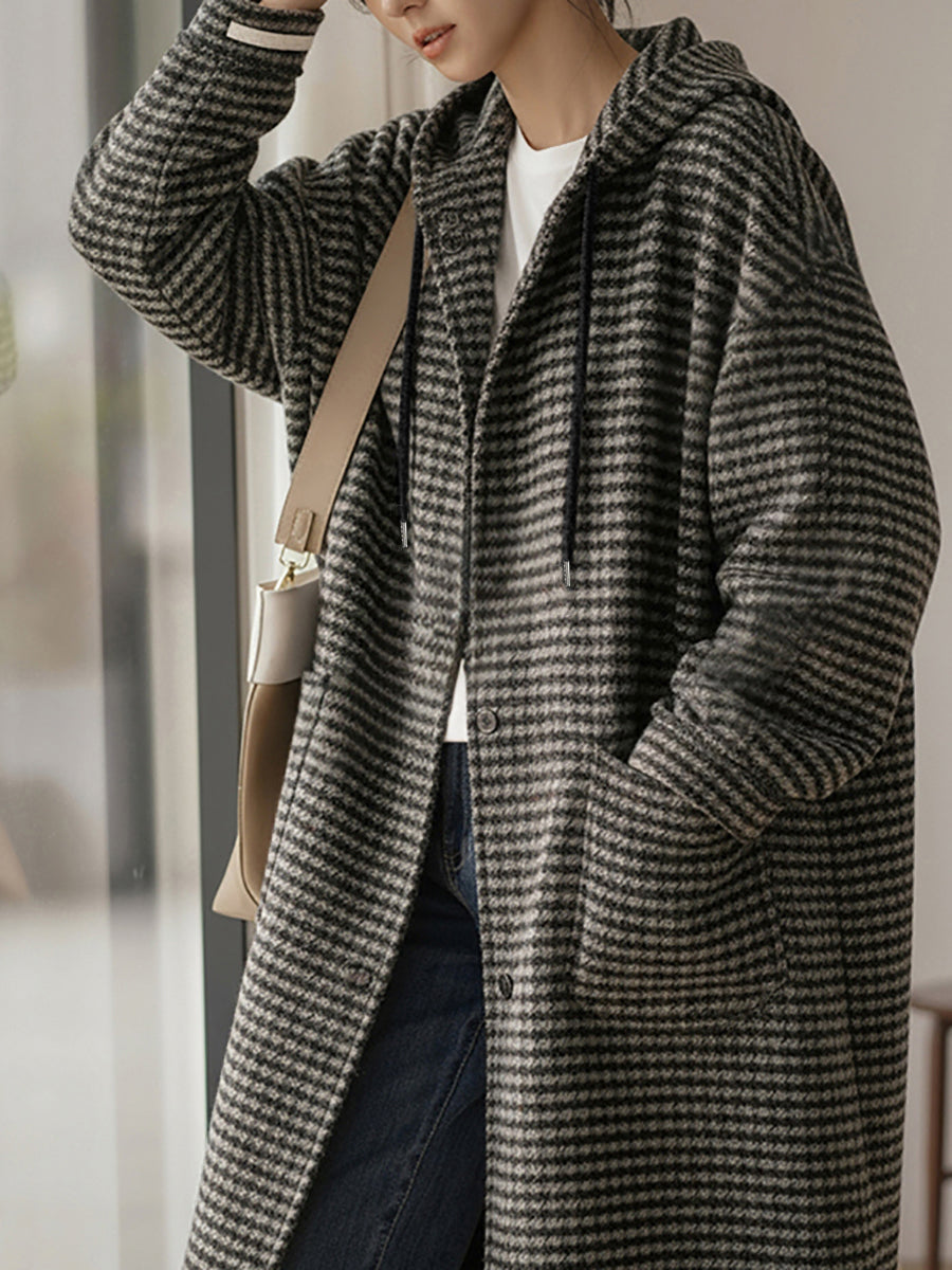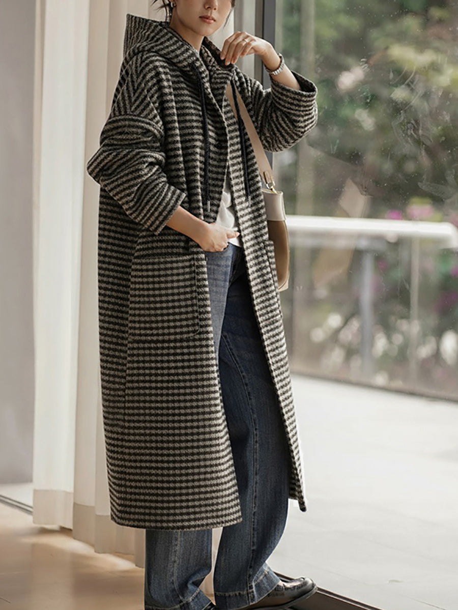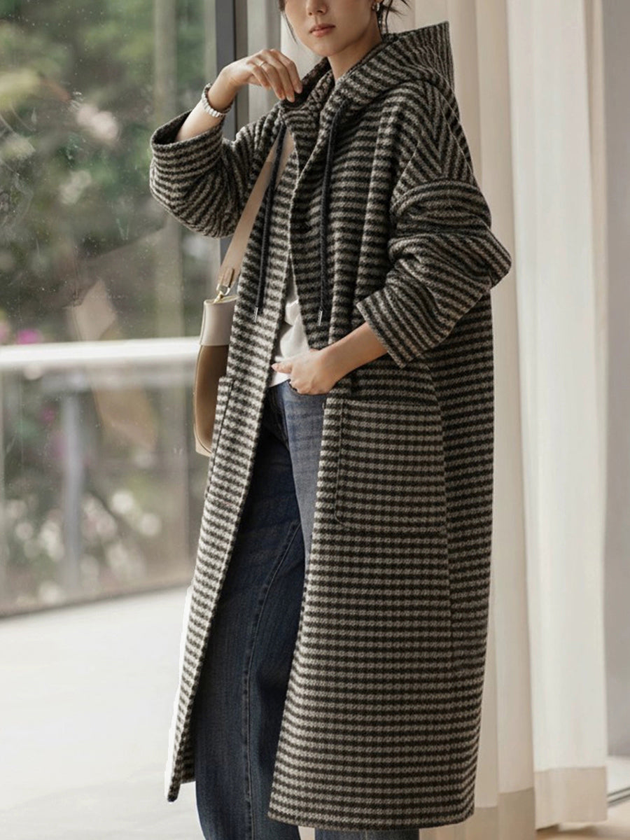 Damen-Wintermantel mit Kapuze und Vintage-Streifen