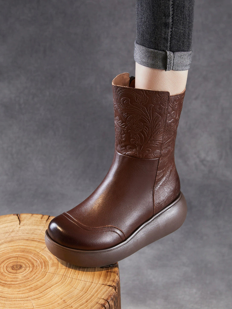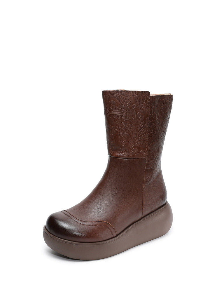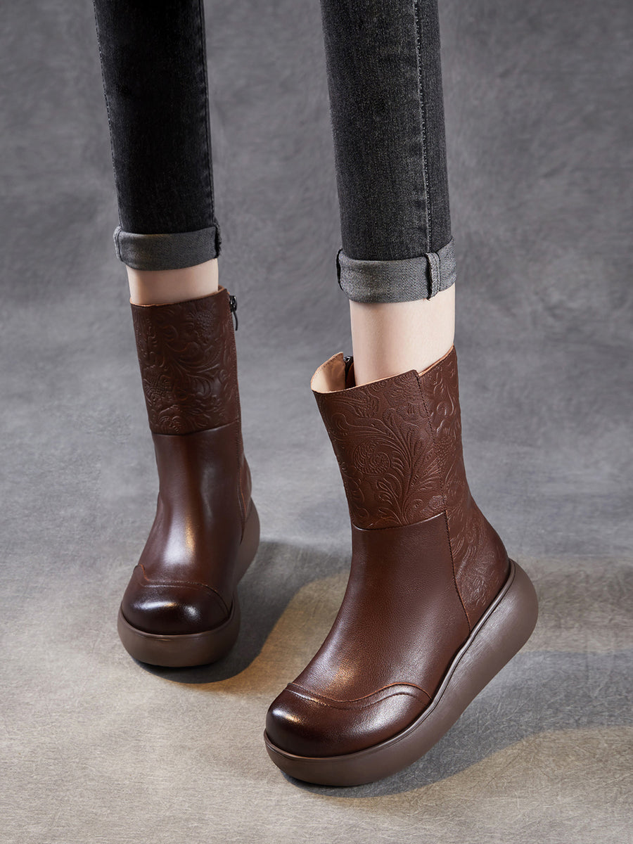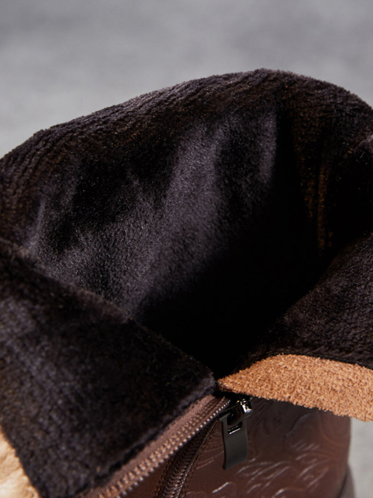 Vintage-Stiefel für Damen aus Leder mit Prägung und Fleecefutter