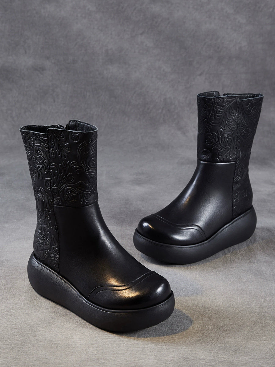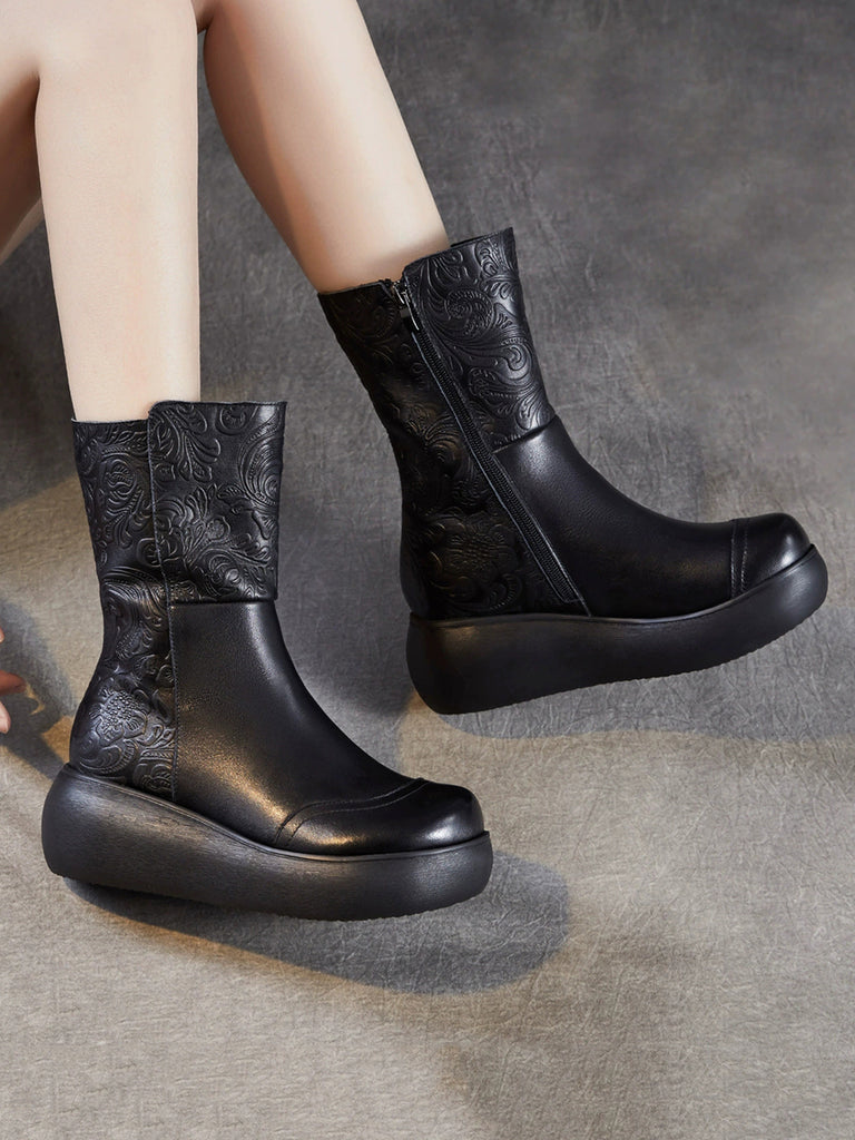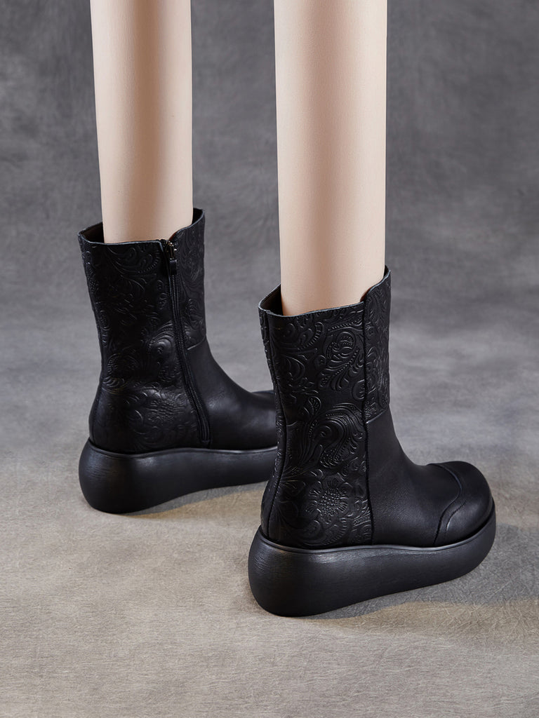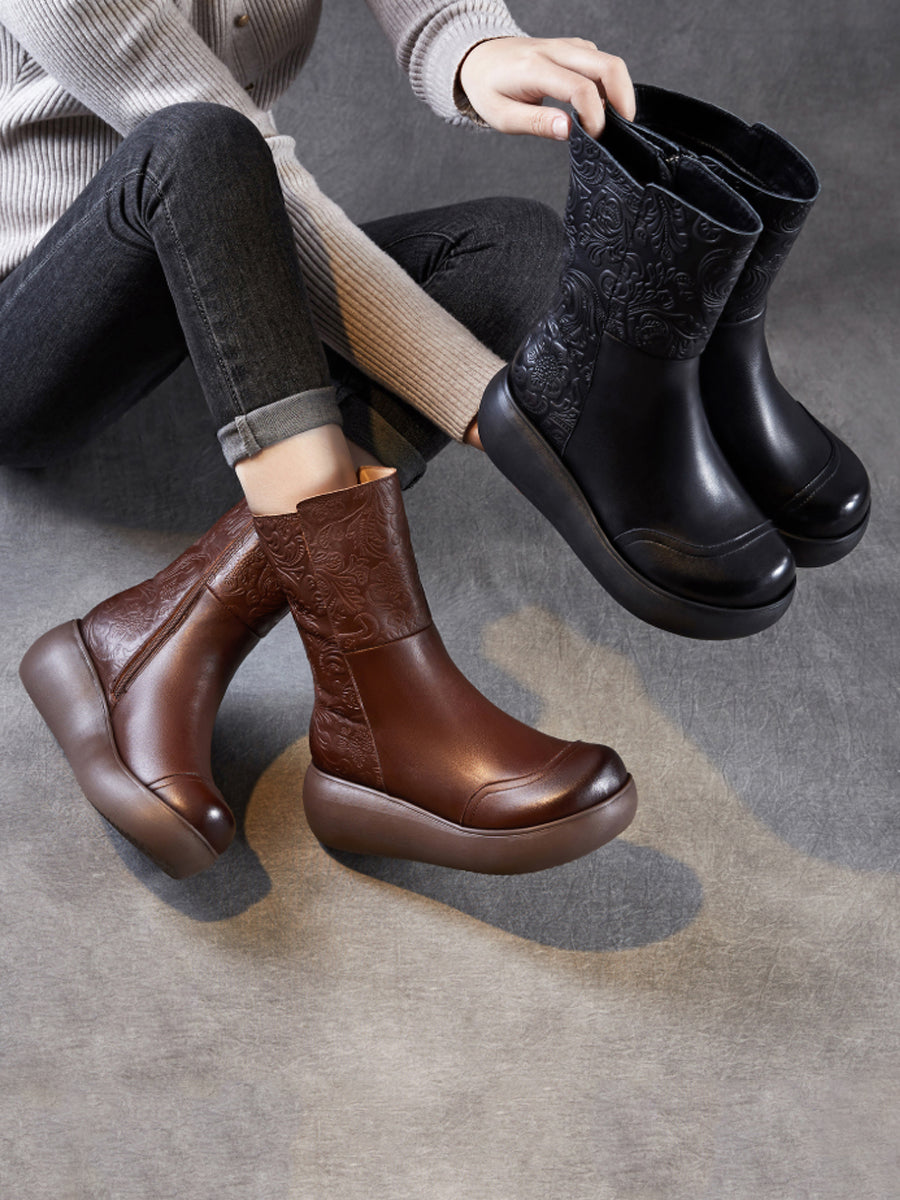 Vintage-Stiefel für Damen aus Leder mit Prägung und Fleecefutter