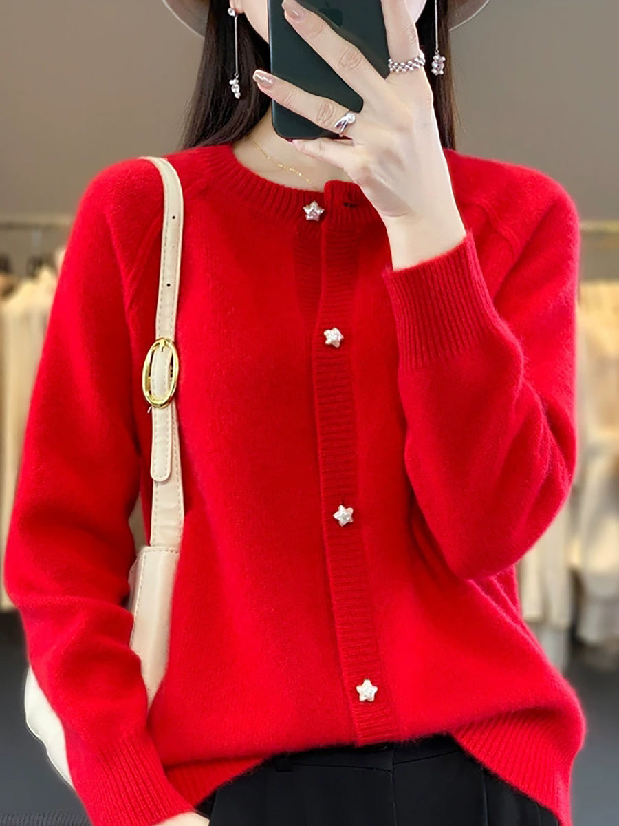 Damen Winter Casual Einfarbiger Rundhalspullover