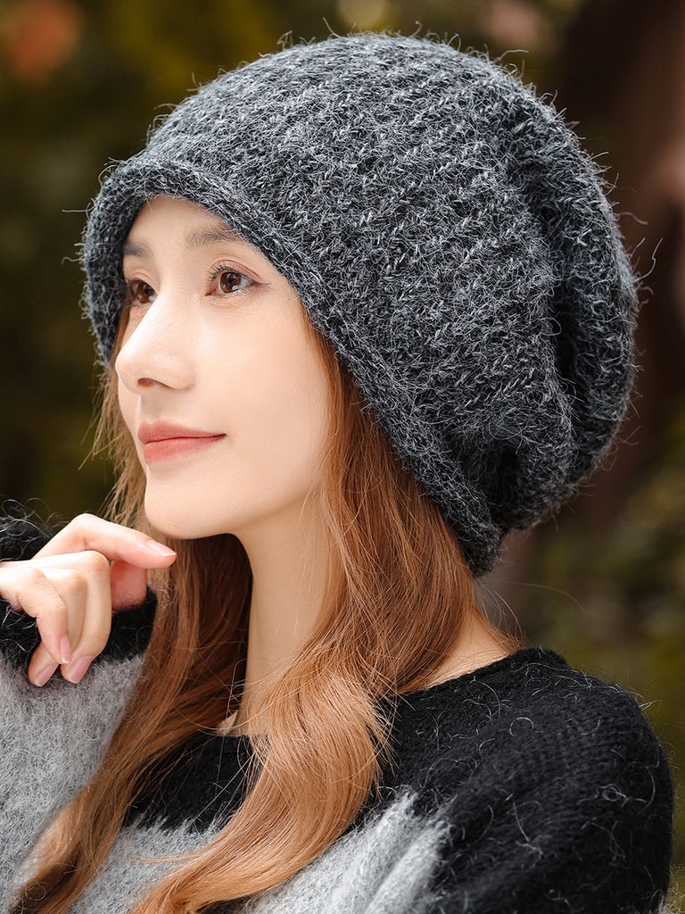 Damen-Wintermütze, einfarbig gestrickt