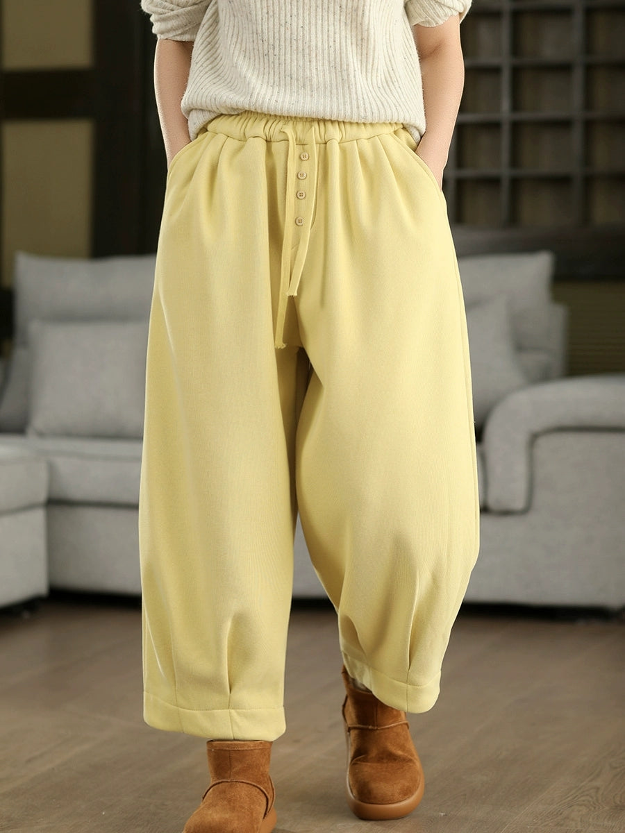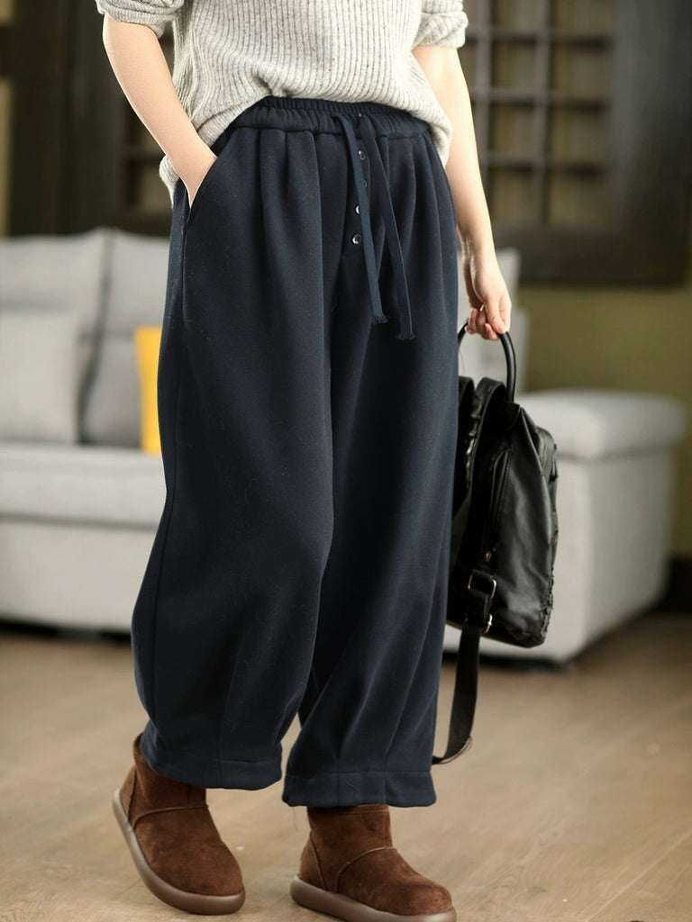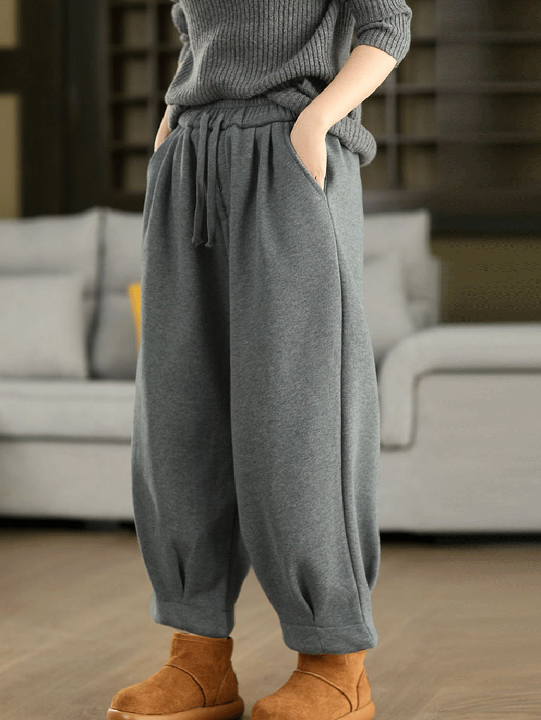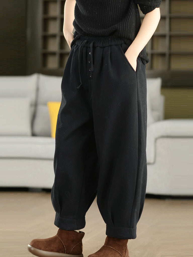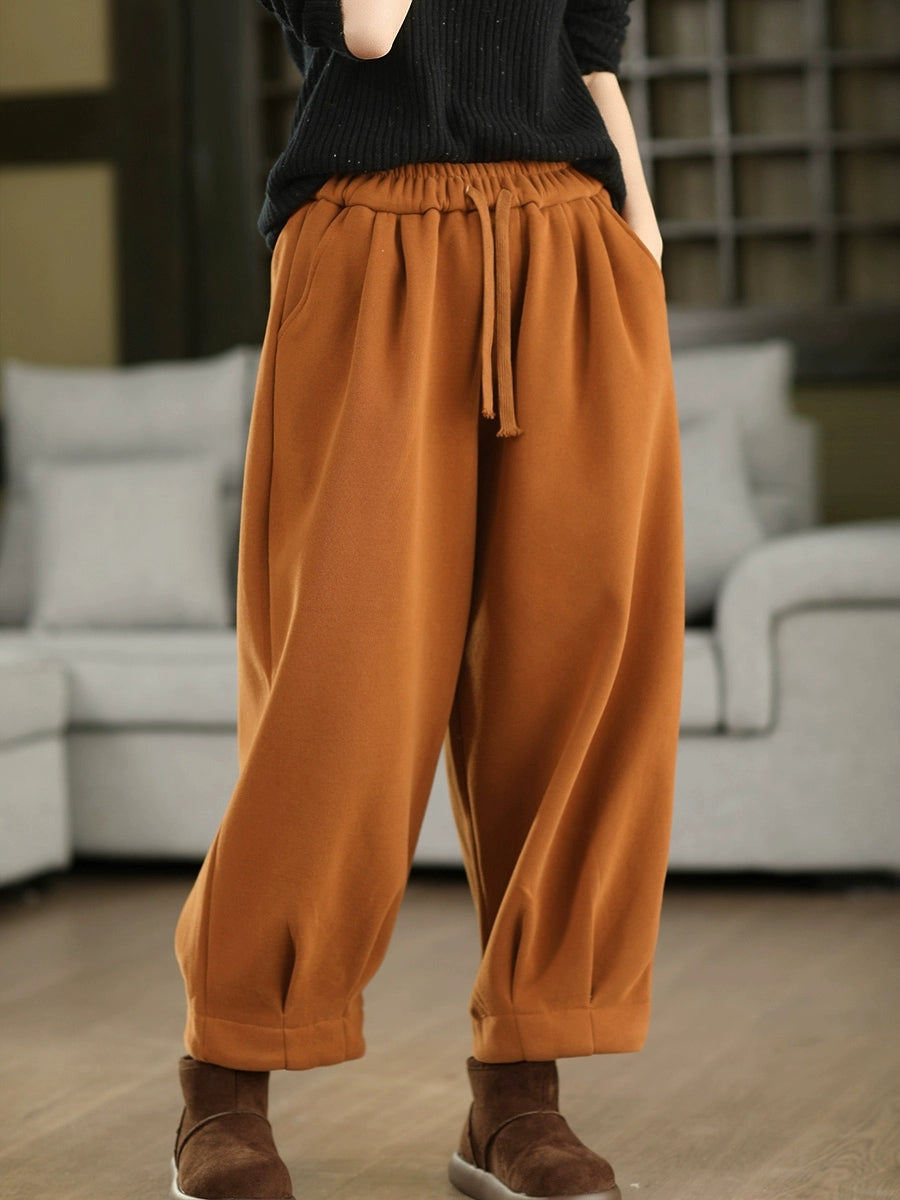 Damen Winter Retro Haremshose in Unifarben, fleecegefüttert