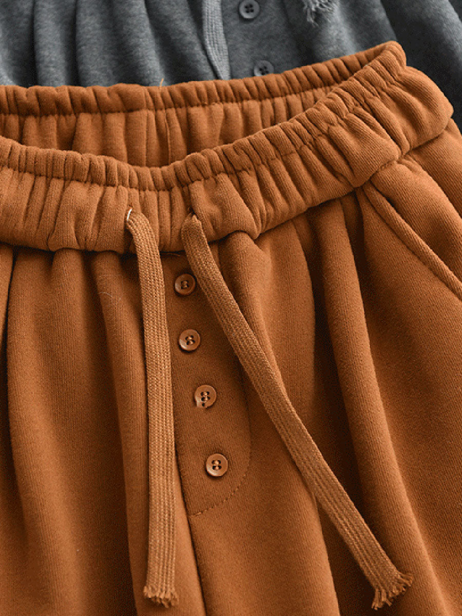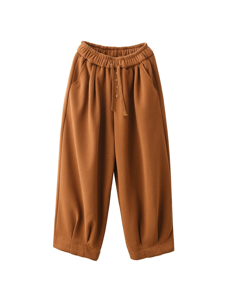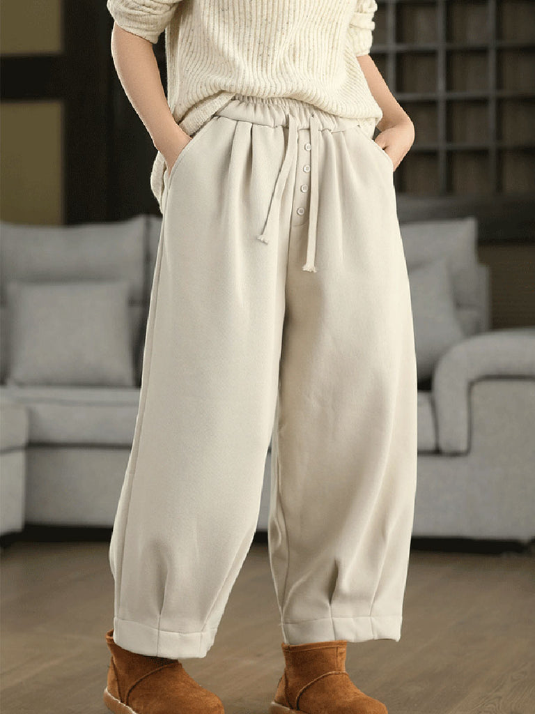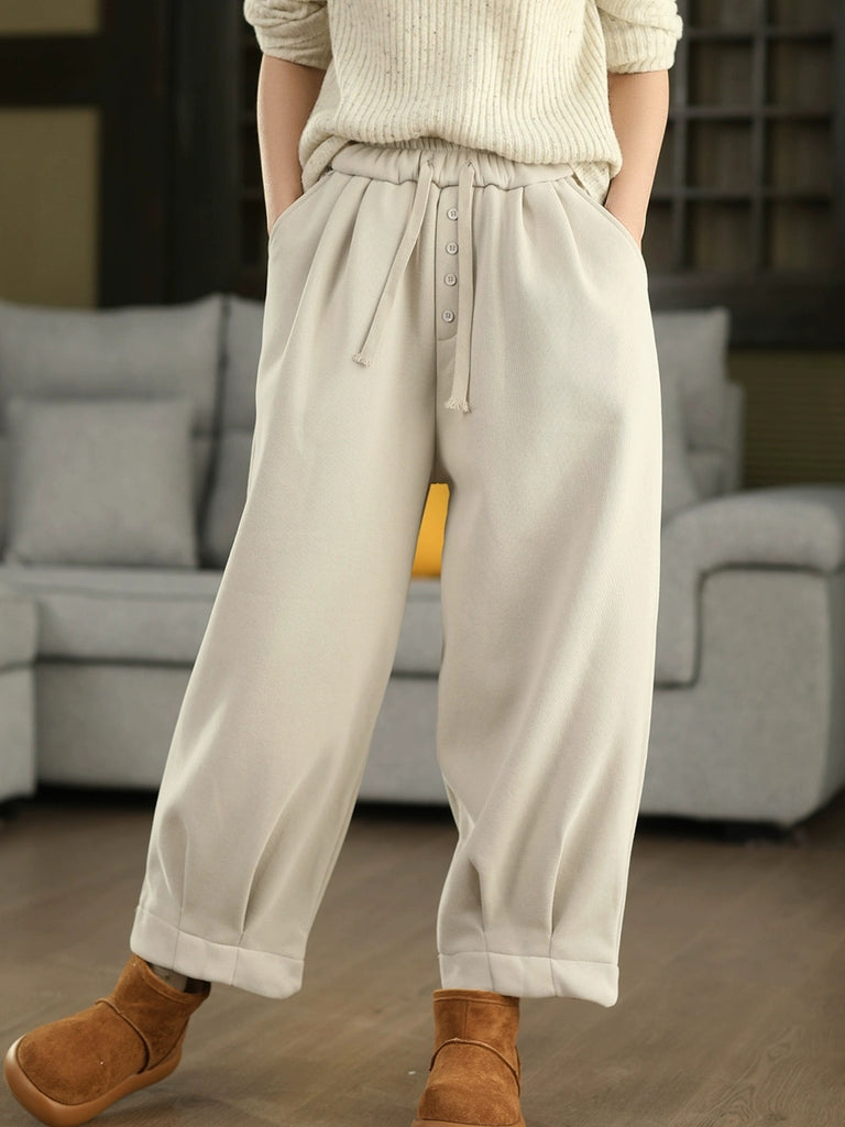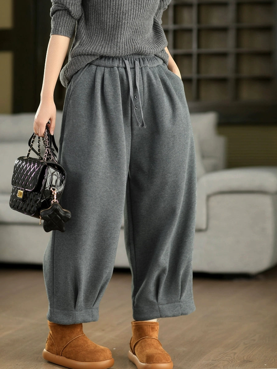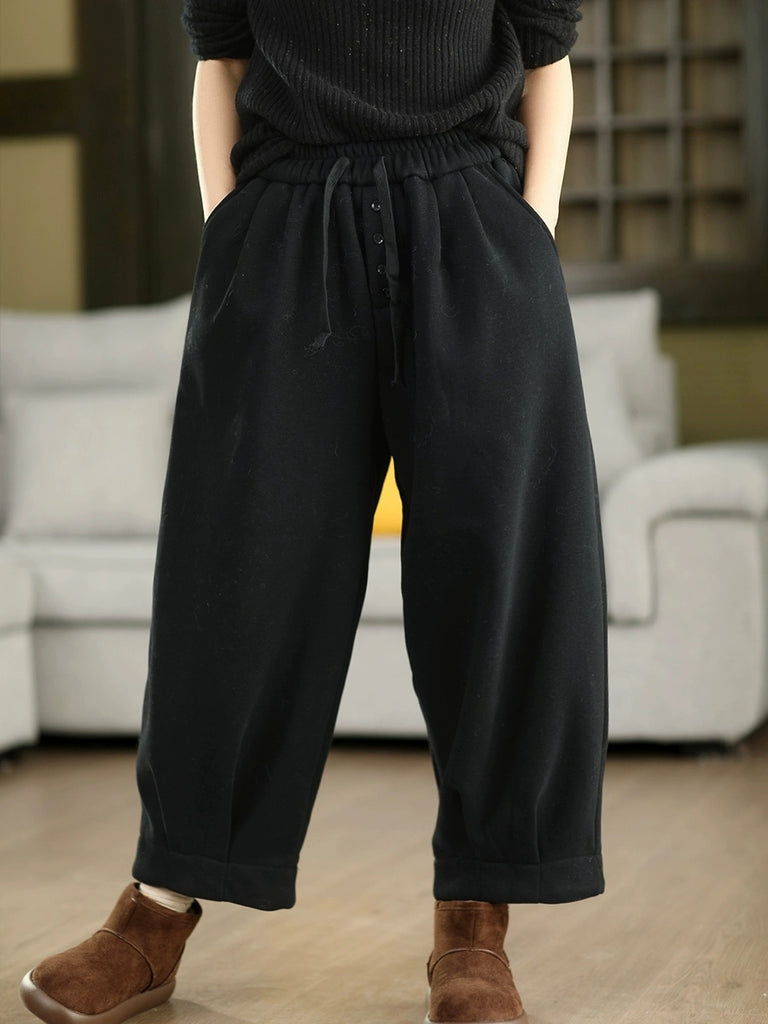 Damen Winter Retro Haremshose in Unifarben, fleecegefüttert
