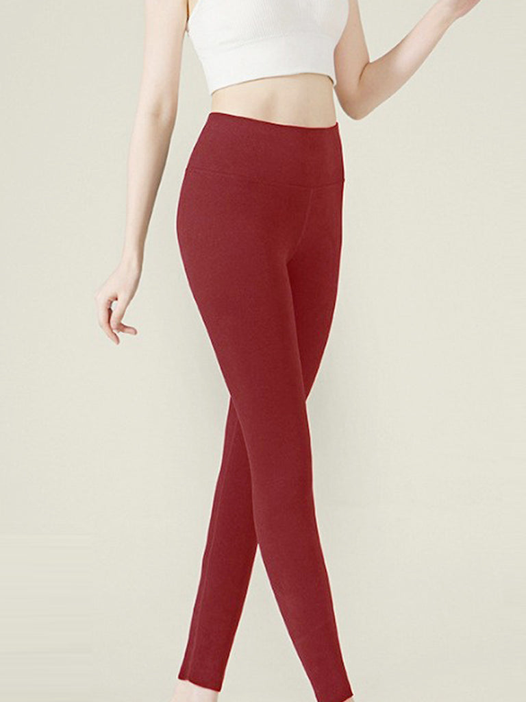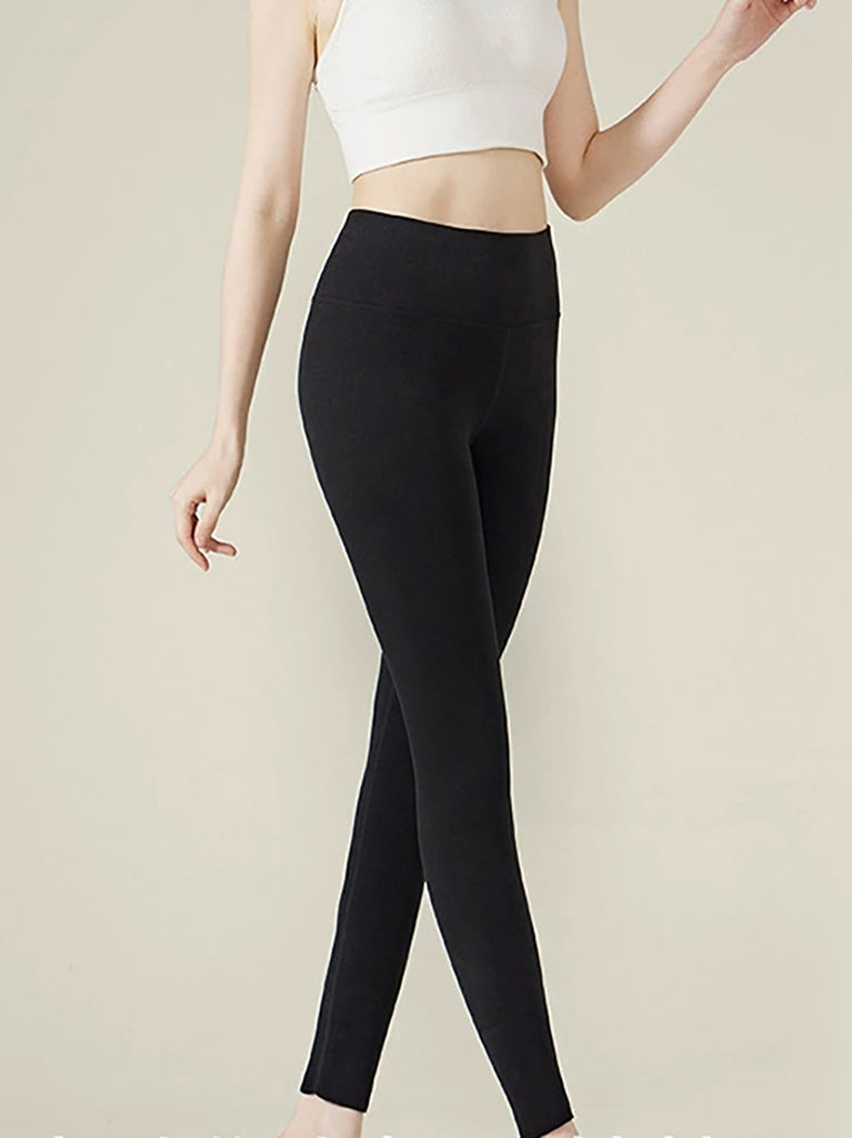 Damen Winter-Leggings, warm, einfarbig, hochtailliert