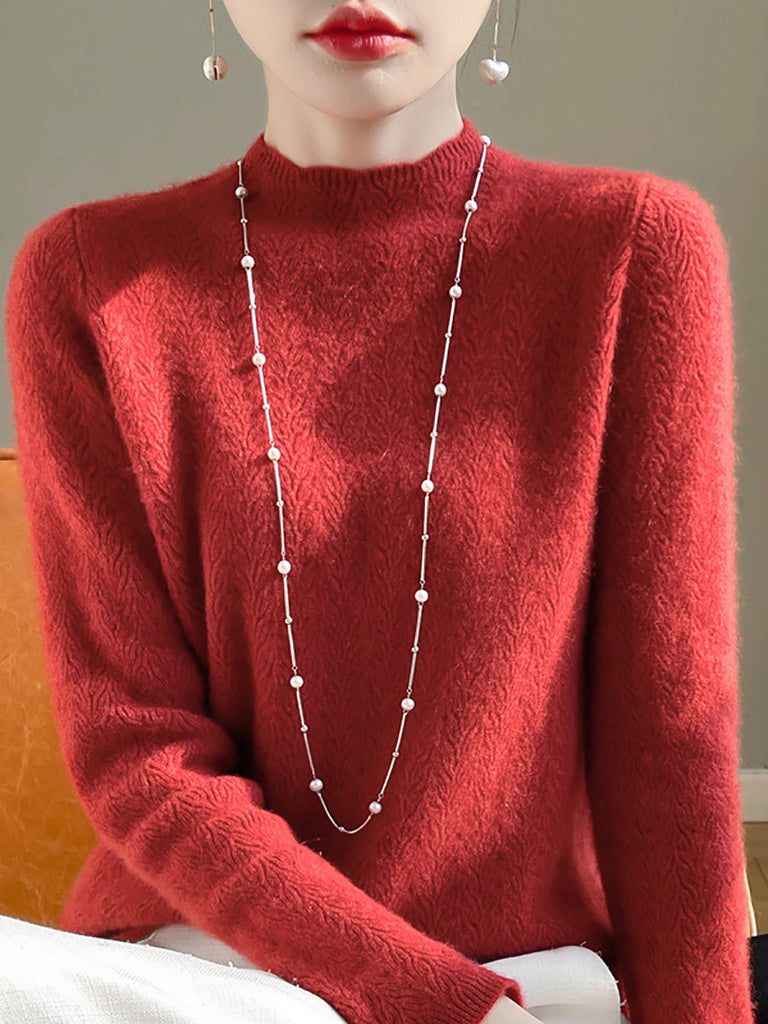 Damen Winterpullover aus Wolle mit Hakenmuster und halbem Rollkragen