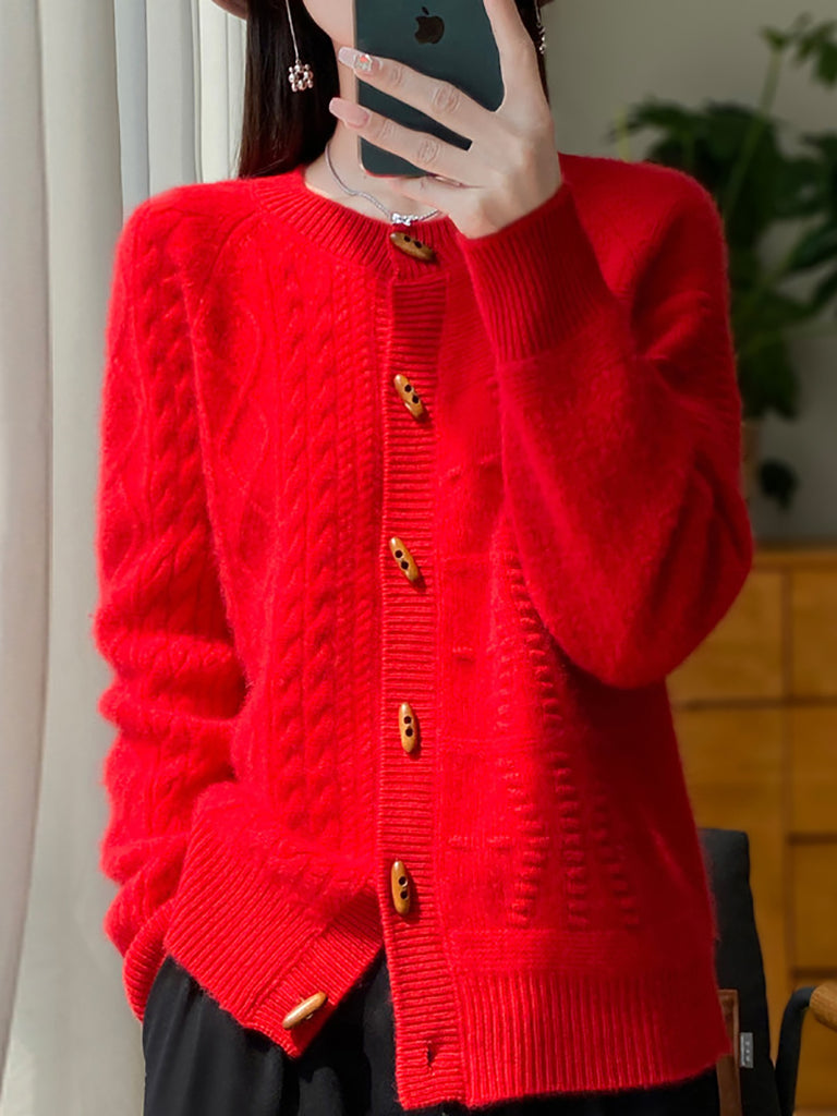 Damen Winterpullover aus Wolle, einfarbig, Rundhalsausschnitt