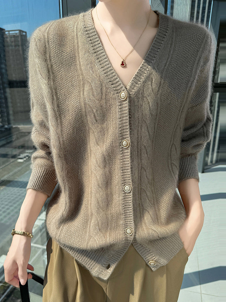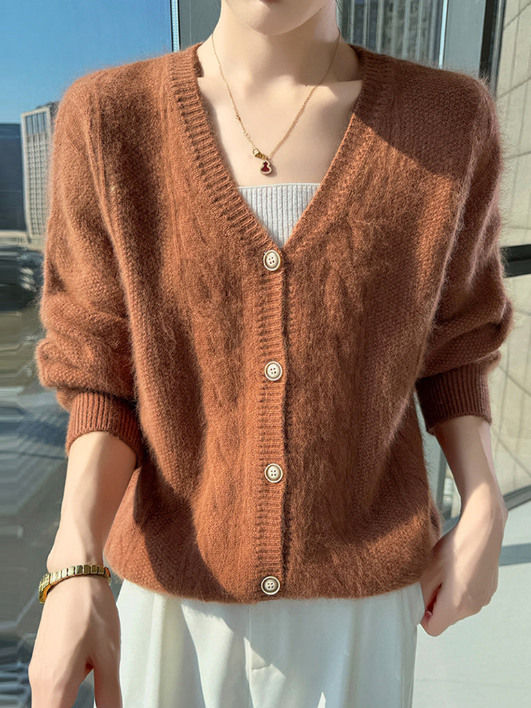 Damen Herbst Casual Einfarbige Strickweste mit V-Ausschnitt
