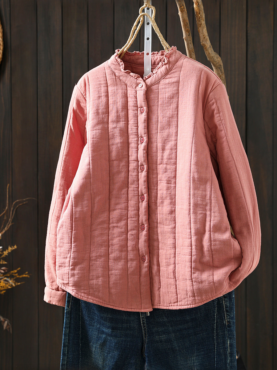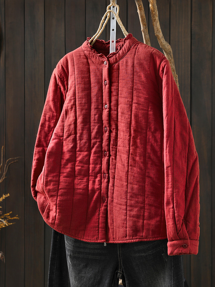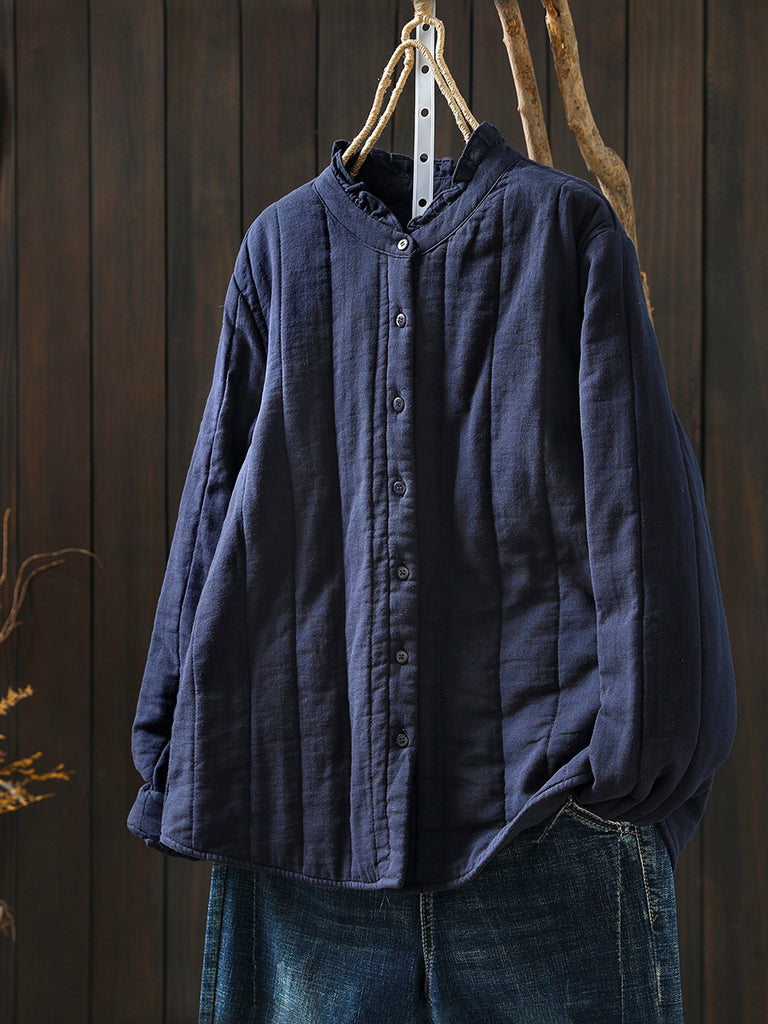 Damen Wintermantel in Unifarbe mit Stehkragen, wattiert