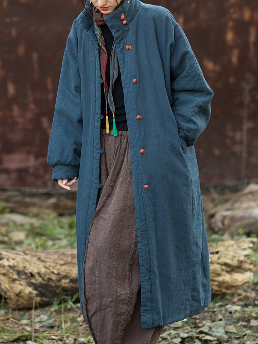 Damen Wintermantel in Unifarben mit Stehkragen, wattiert