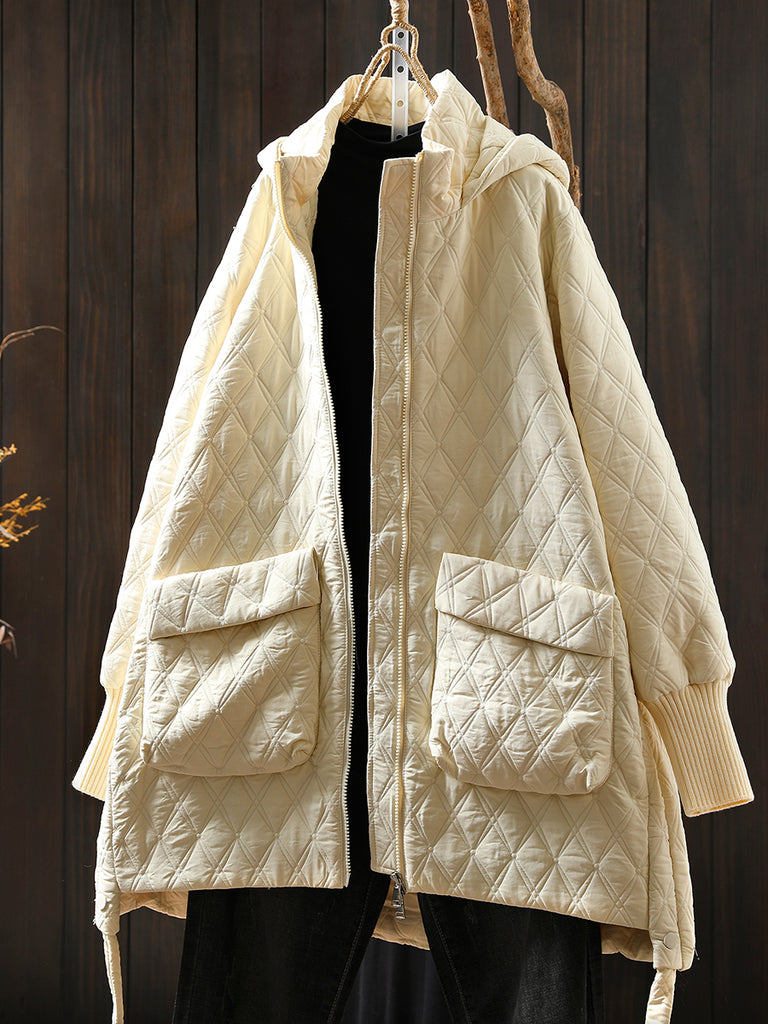 Damen Herbst Lässiger Rhomboids Kapuzen-Baumwollmantel