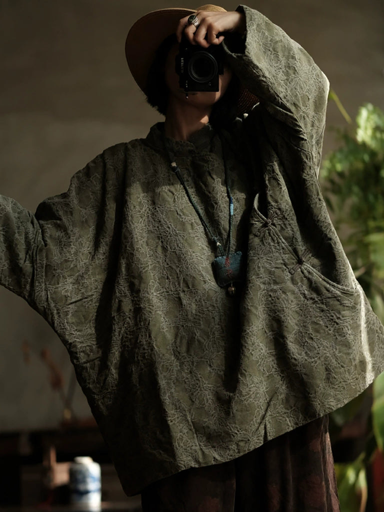Damen Ethnischer Herbst Jacquard Stehkragen Mantel
