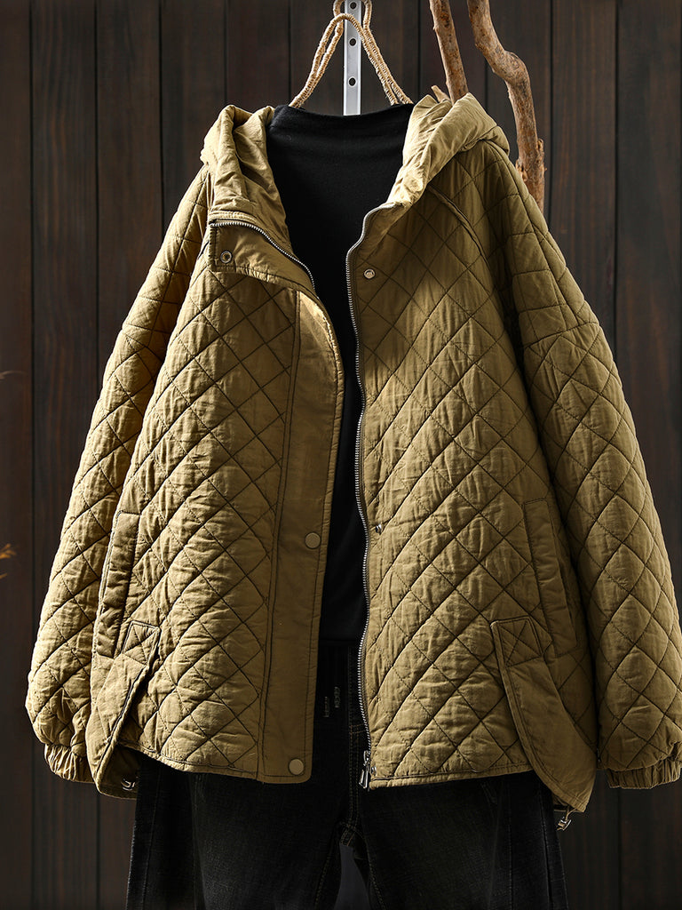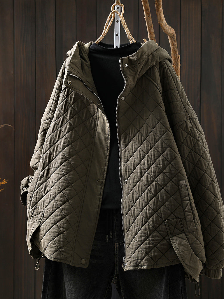 Damen Herbst Vintage Plaid Gepolsterte Kapuzenjacke