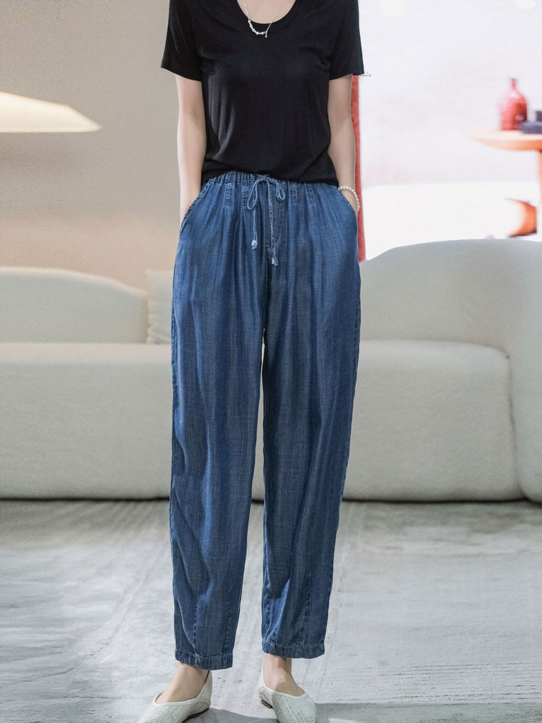Damen Lässige Sommer-Haremshose aus reinem Denim in