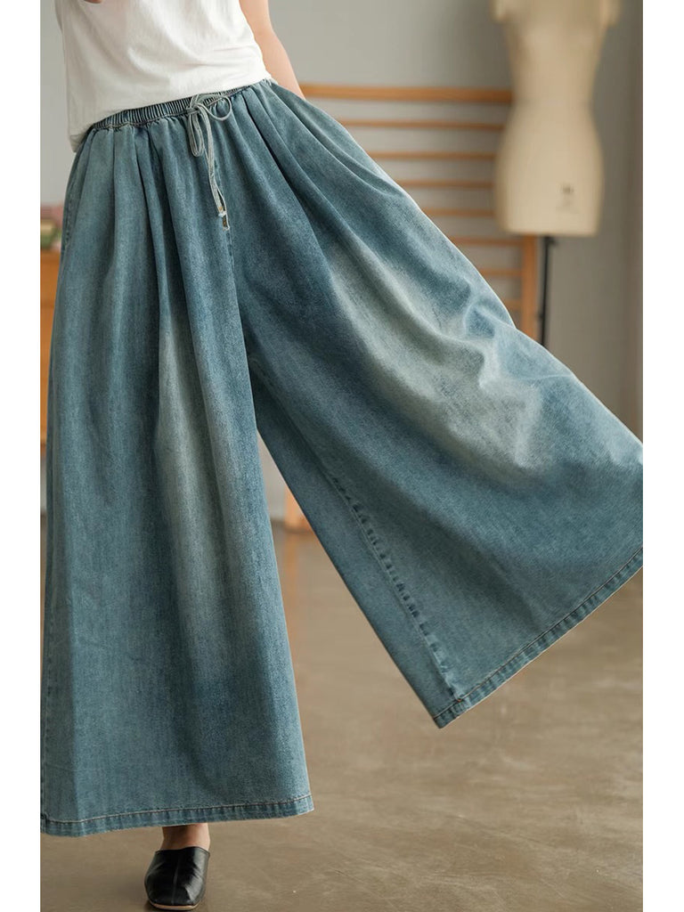 Lässige Sommerhose aus reinem Denim mit weitem Bein für Damen