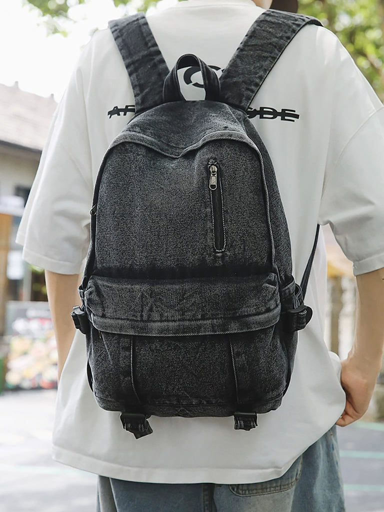 Damen Pure Color Denim Rucksack mit großer Kapazität