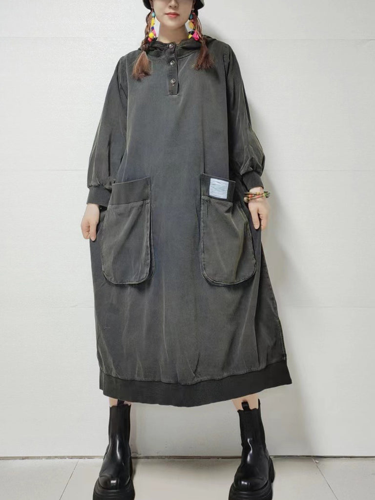 Damen Winter Artsy Solid Fledermausärmel Kapuzenkleid