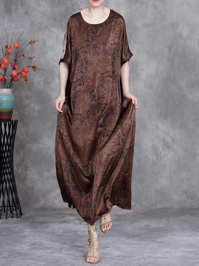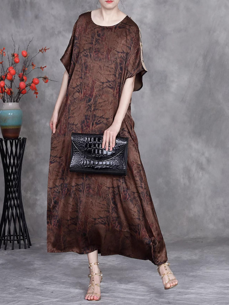 Plus Size Damen Vintage Casual O-Ausschnitt Maxikleid