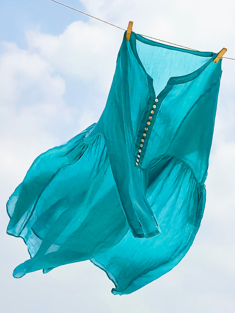 Damen Herbst Pure Color Umlegekragen 100% Baumwolle Kleid