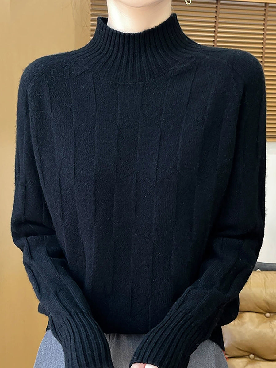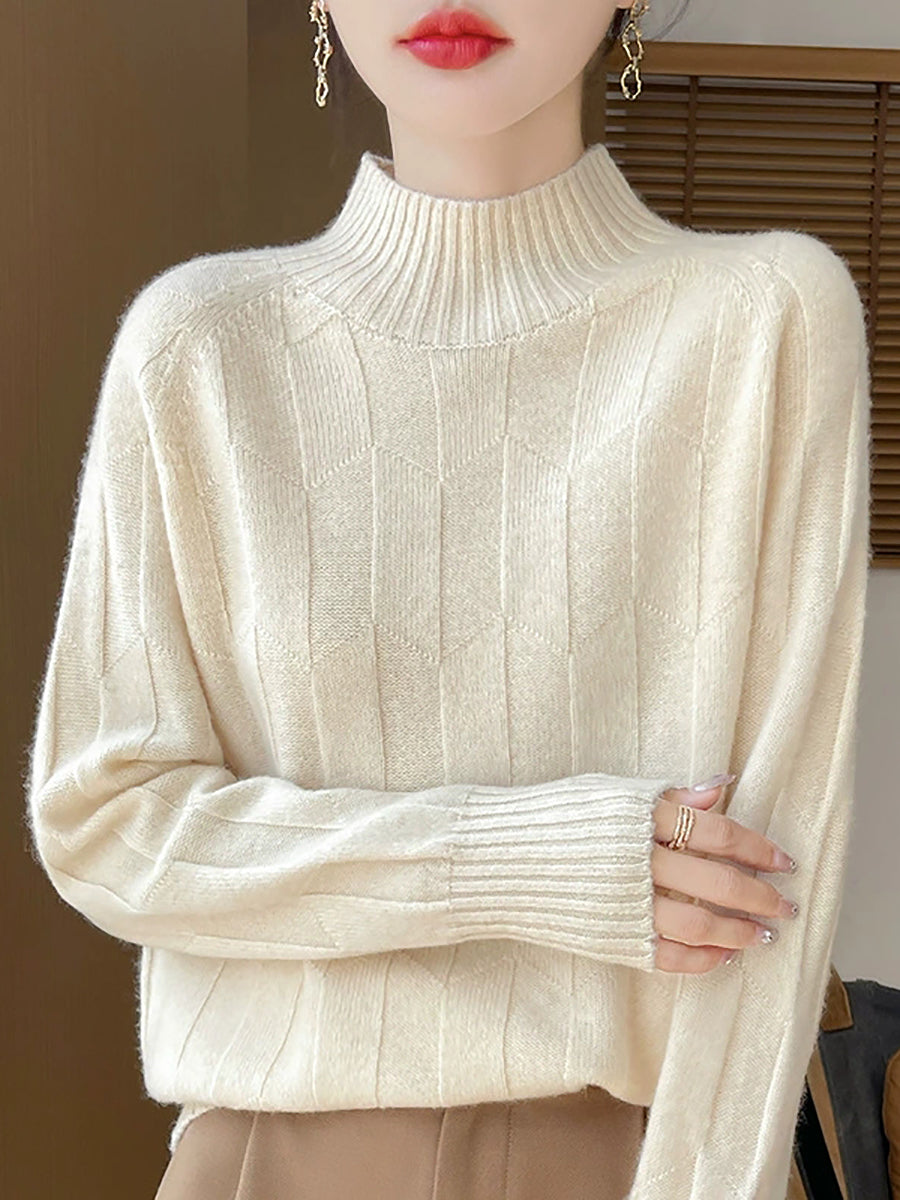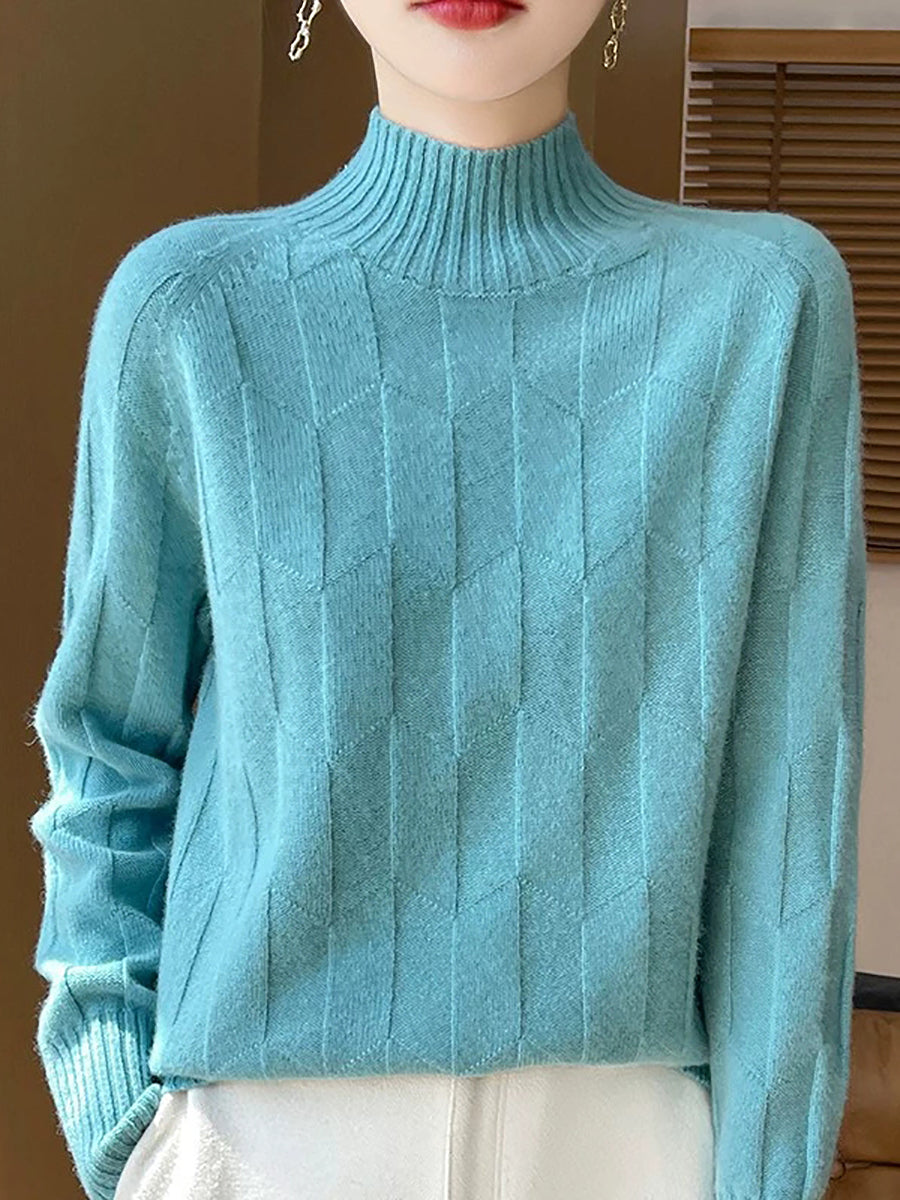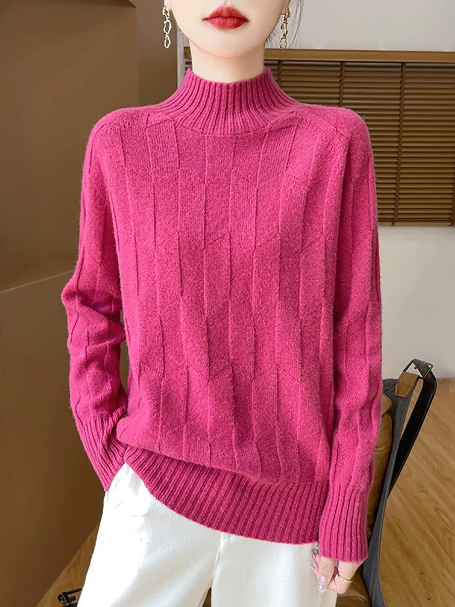 Lässiger Damen-Frühlingspullover in Unifarben mit halbem Rollkragen