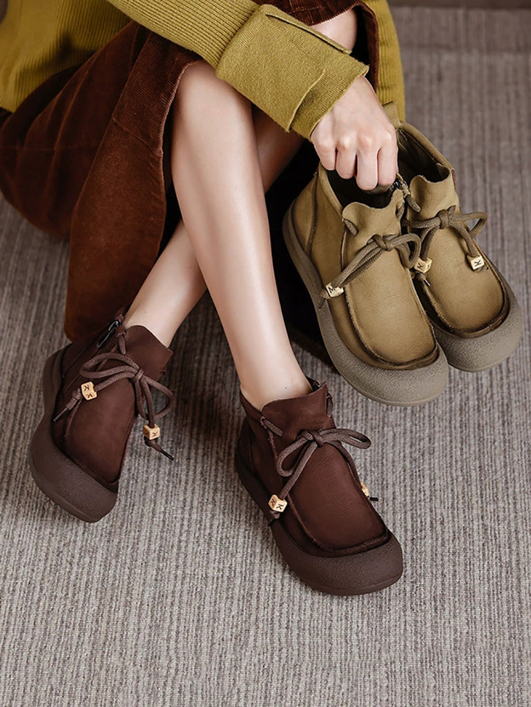Gespleißte Stiefeletten aus Leder im Retro-Stil für Damen im Winter