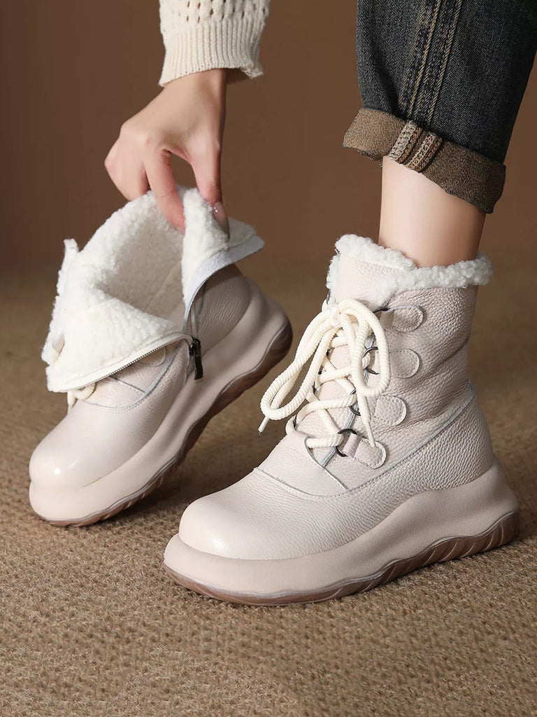 Damen Winter Plateau-Stiefeletten aus echtem Leder