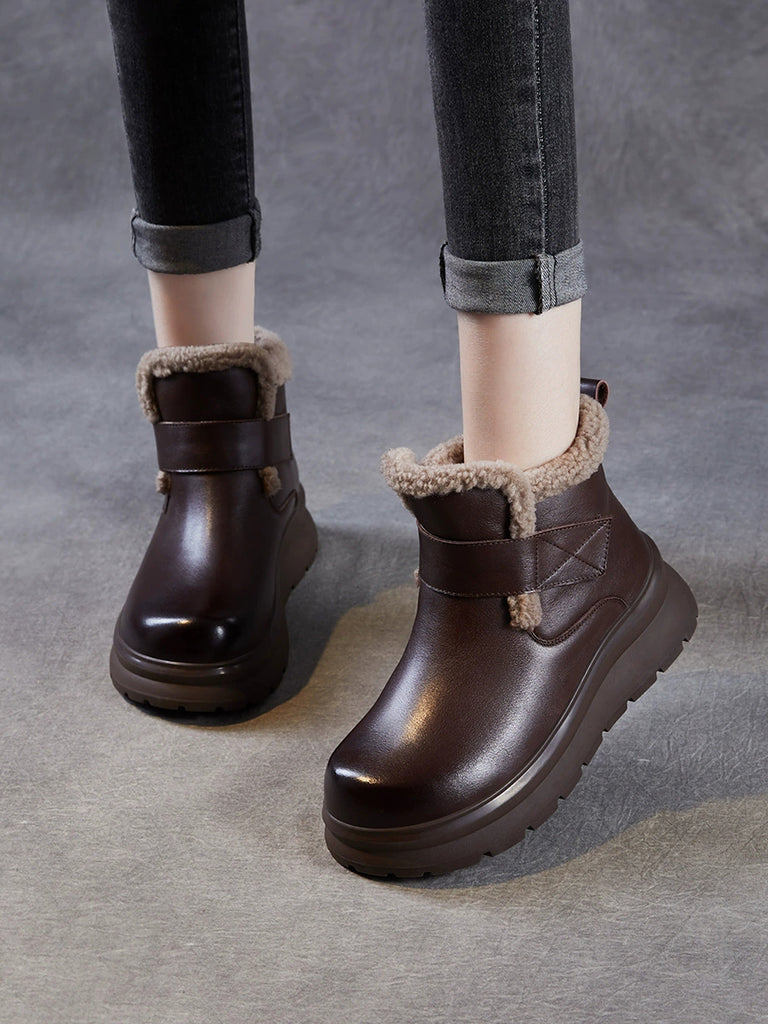 Damen Winter Casual Weiche Leder Fleece-gefütterte Stiefeletten