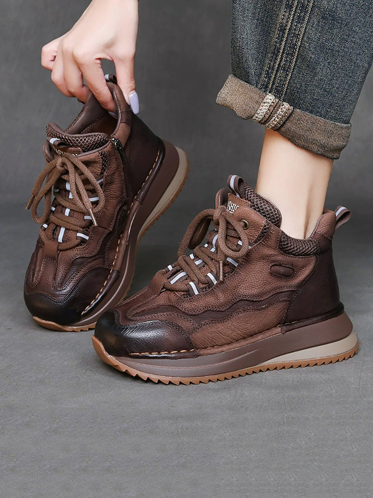 Damen Vintage Echtleder Spliced Plateauschuhe
