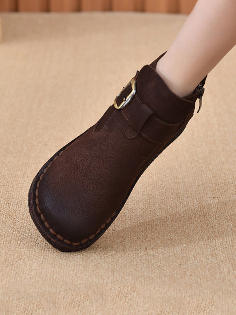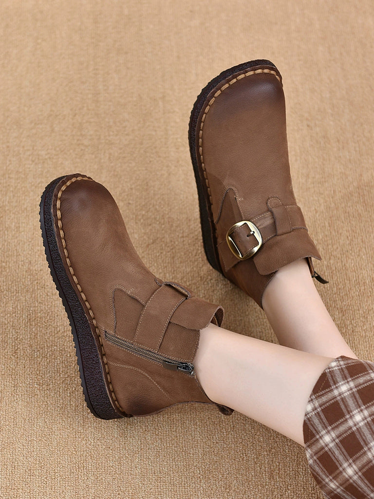 Damen Vintage Stiefeletten aus echtem Leder mit niedrigem Absatz
